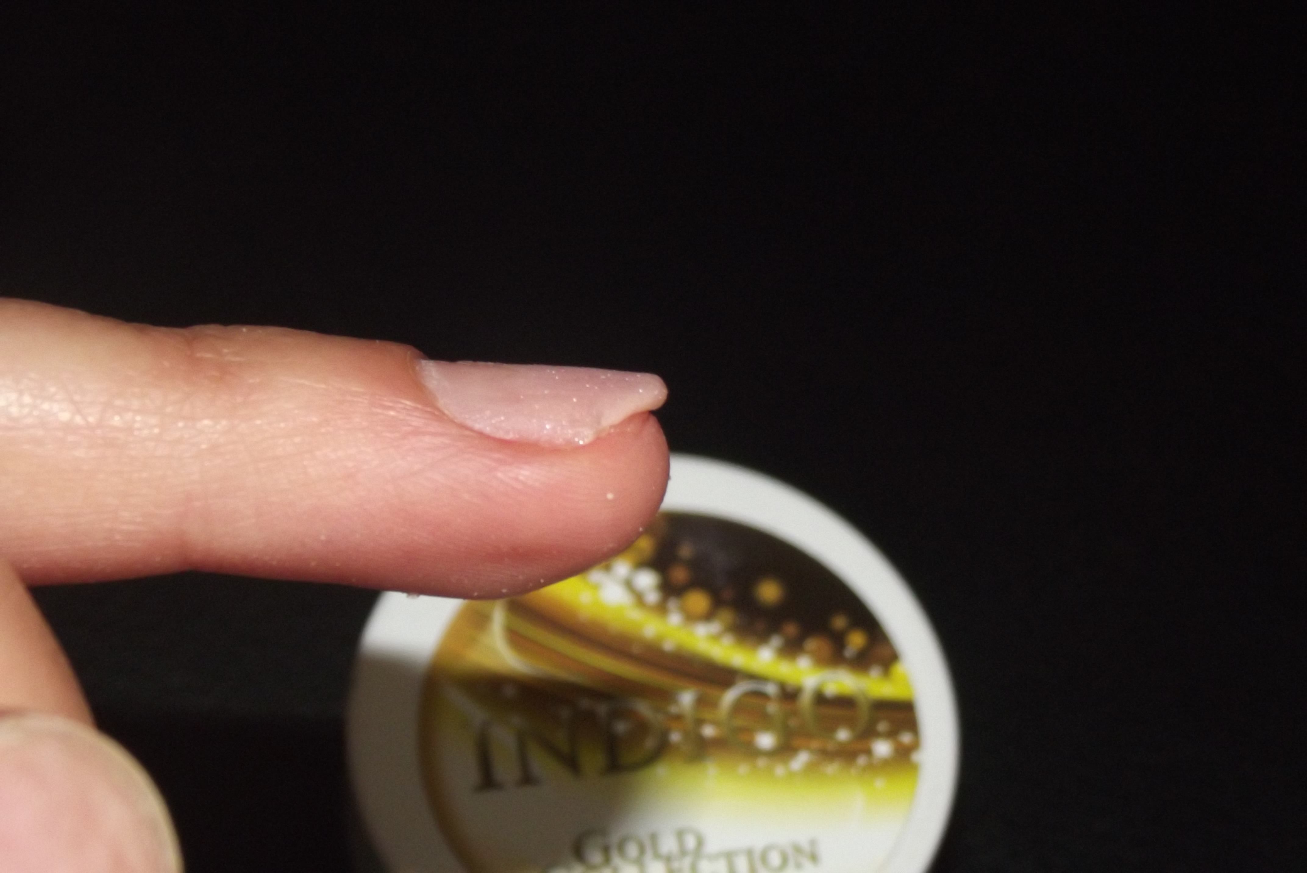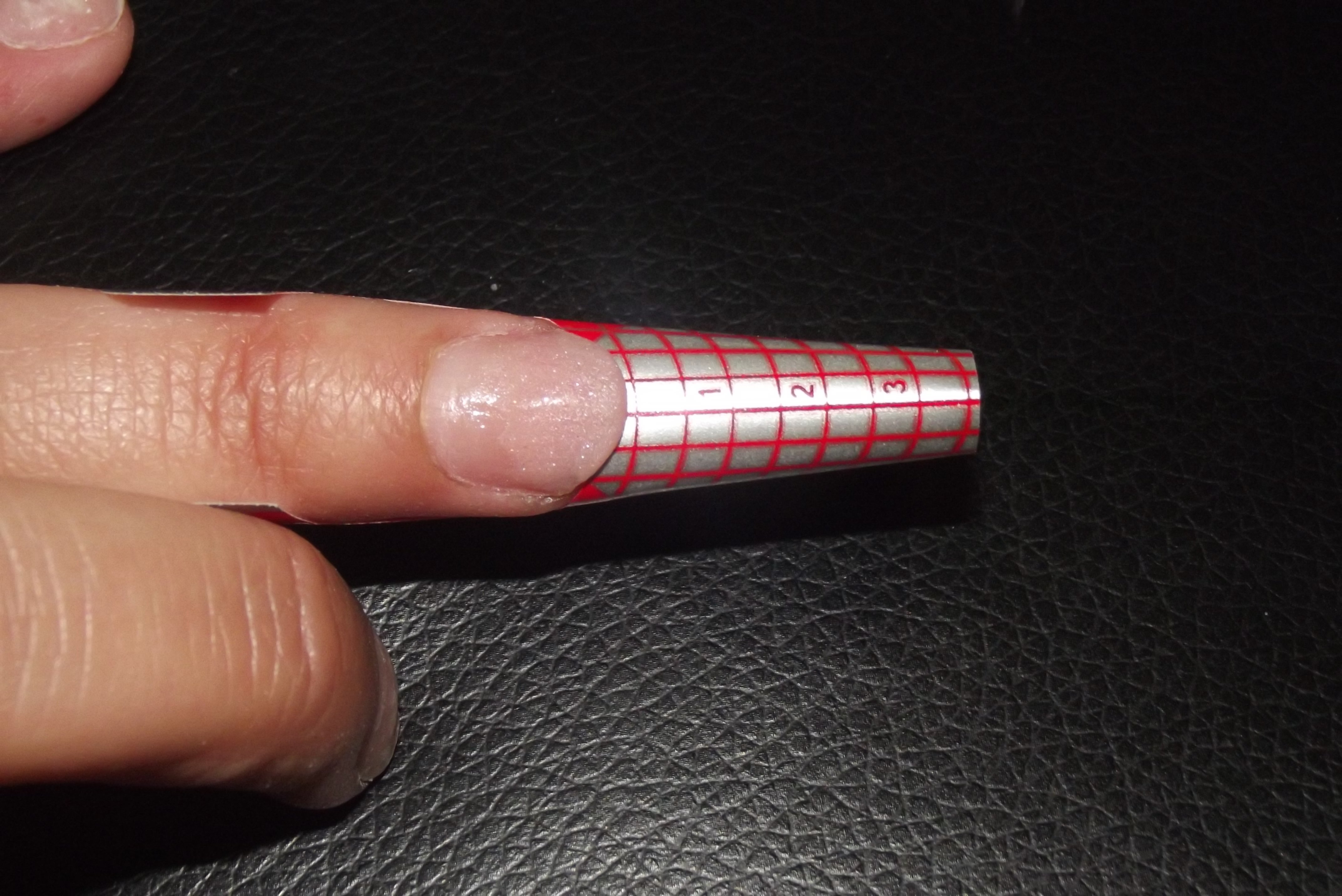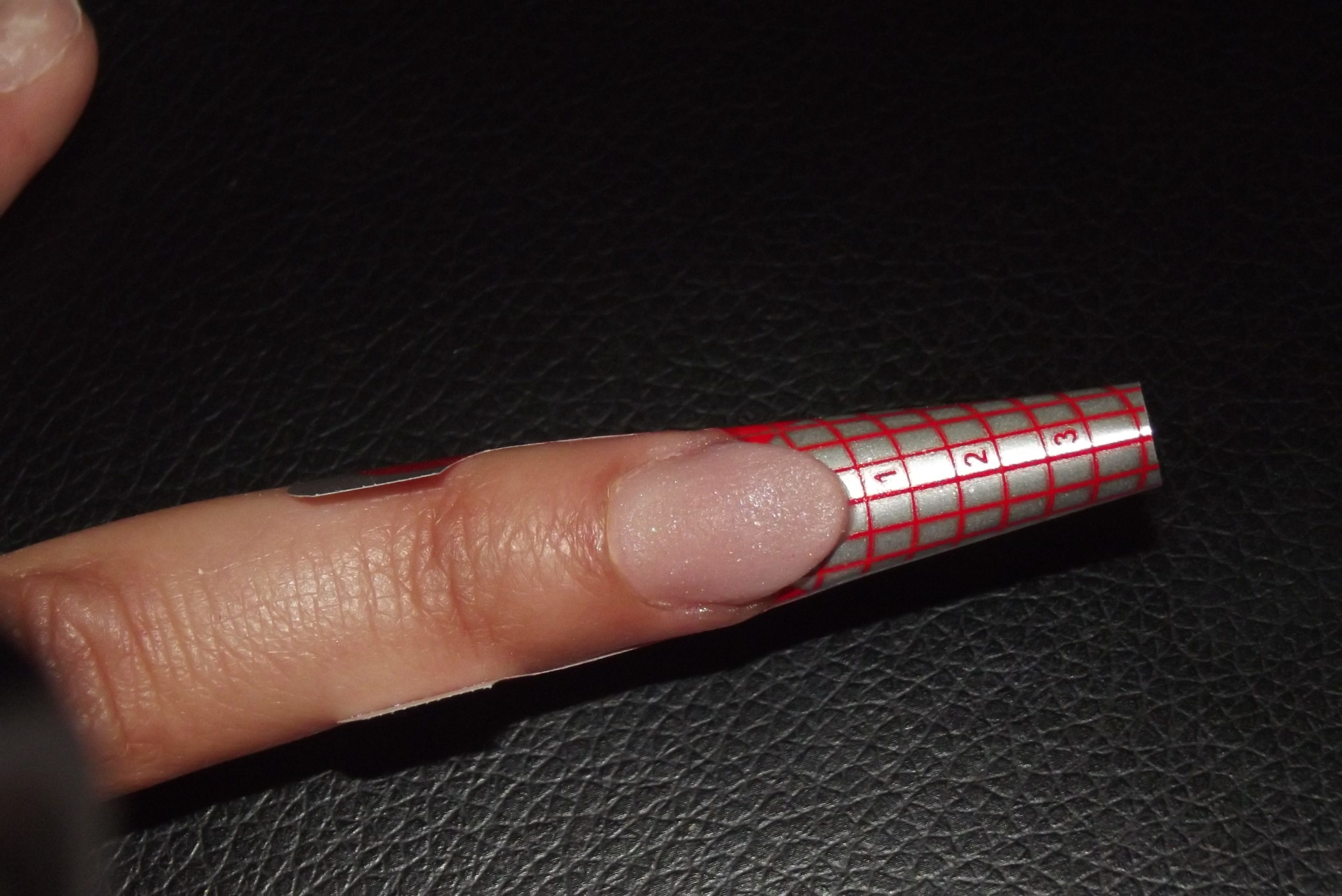 photo 2: reconstitution d un bord libre ( sans chablon) il me faut une boule resine pas trop liquide que je pose juste sur le bord de mon ongle et que j etire de facon a créer un bord libre en tres fine couche