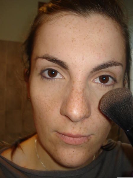 Après si tu veux met du fond de teint pour ma part j en met pas, je poudre avec une terre de soleil ou juste de la transparente toujours en premier. la poudre va fixer l anti cerne vu que c est un corps gras