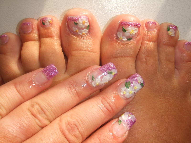 ensuite french rose paillettees + rappel deco 3d au pieds (jai osé)* mais le flash blanchit plus les 3d*