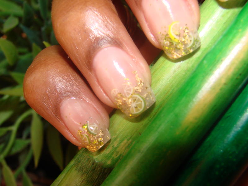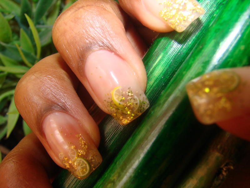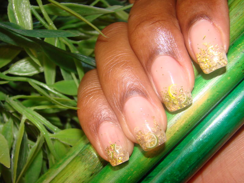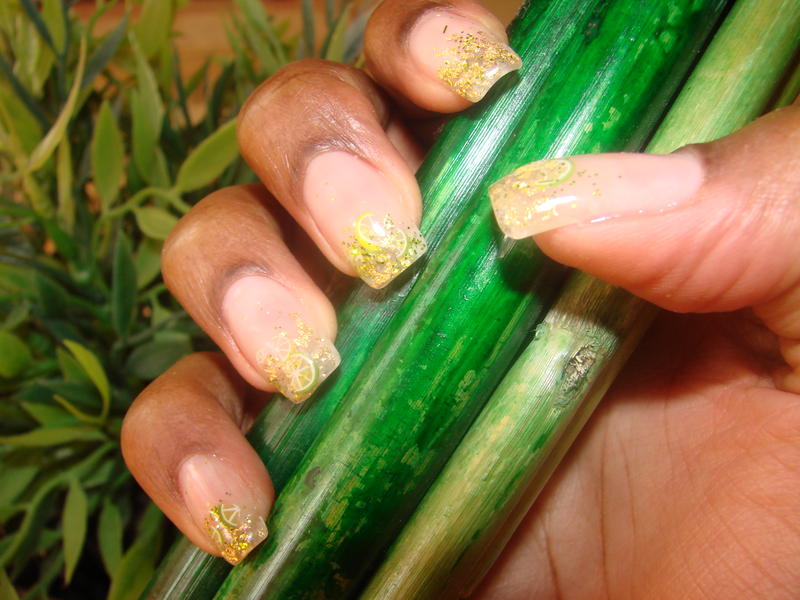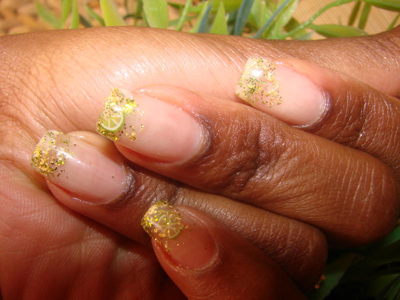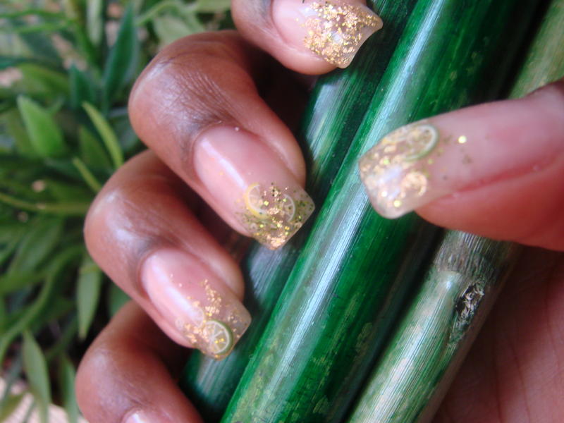 Alors voici ma pose, faite avec les gels american nails : bond base, sculptor et le gel perfection en finition frootys et paillettes vertes et or !!