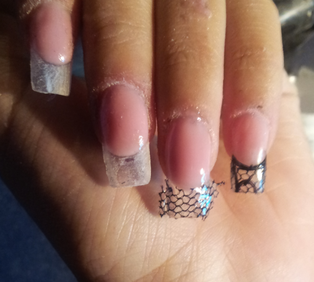 5- dessiné la french avec peinture acrylique ou gel. et tirer des traits par dessu la resille. Modelage au gel de construction et gel finition