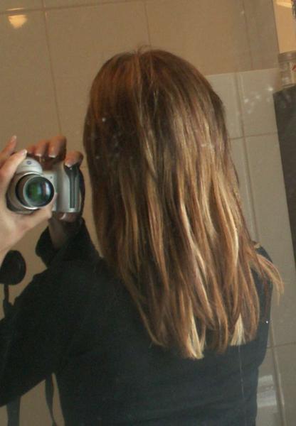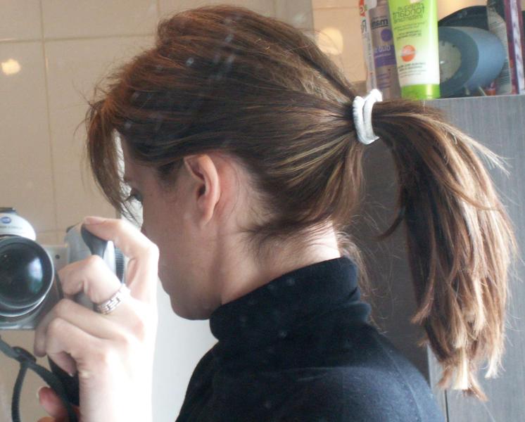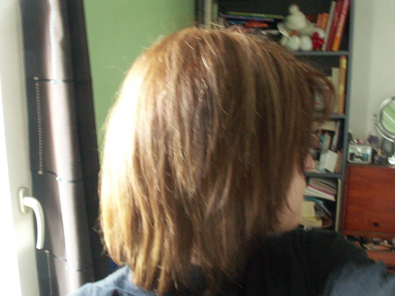 Voilà !!! Une fois de plus j'en ai eu marre de ma tête, alors je me suis posé des extensions, toute seule, comme une grande. Ce qui est dur c'est la coupe - Merci à mon mari d'avoir coupé la base, j'en ensuite essayé de faire un déggradé au rasoir comme j'ai pu.