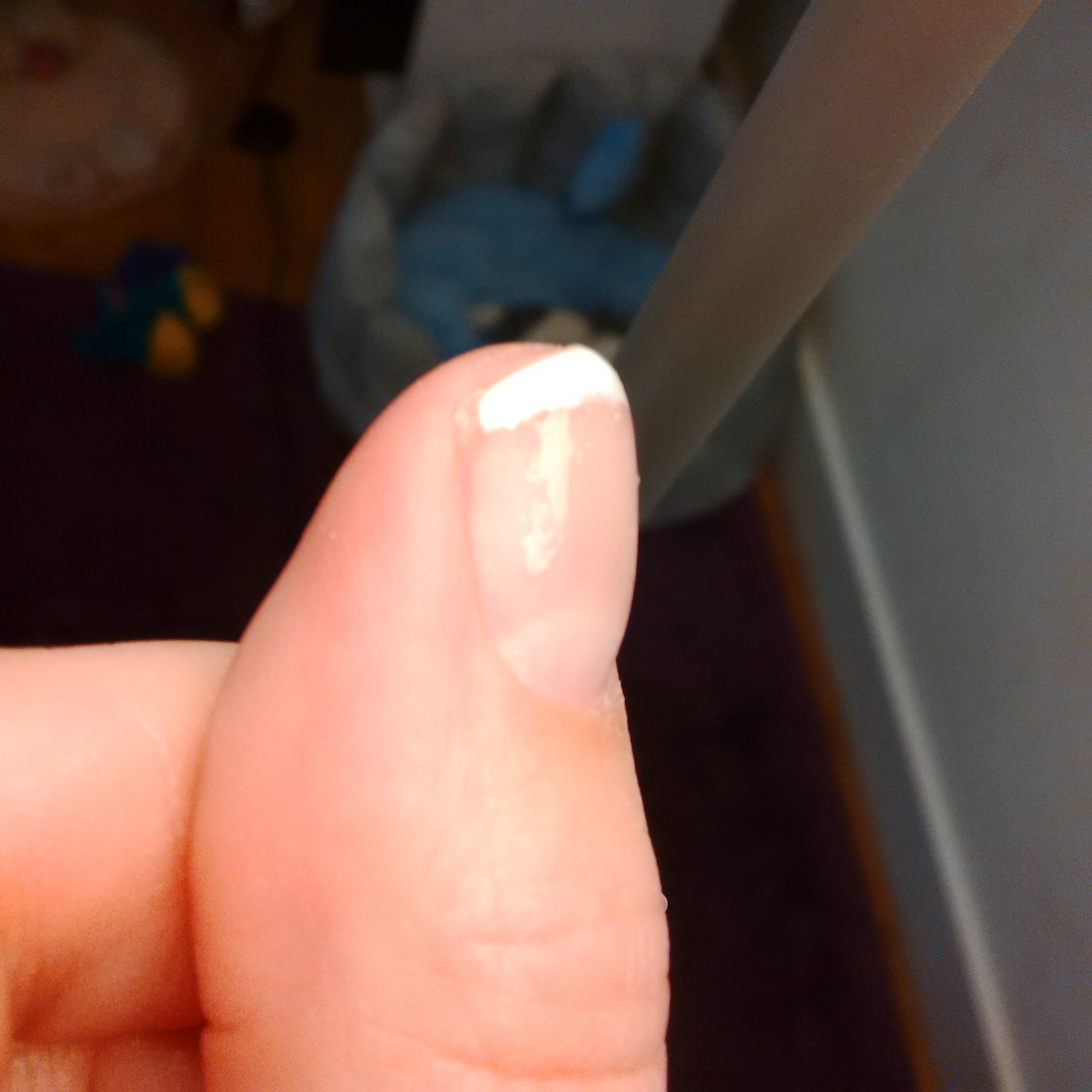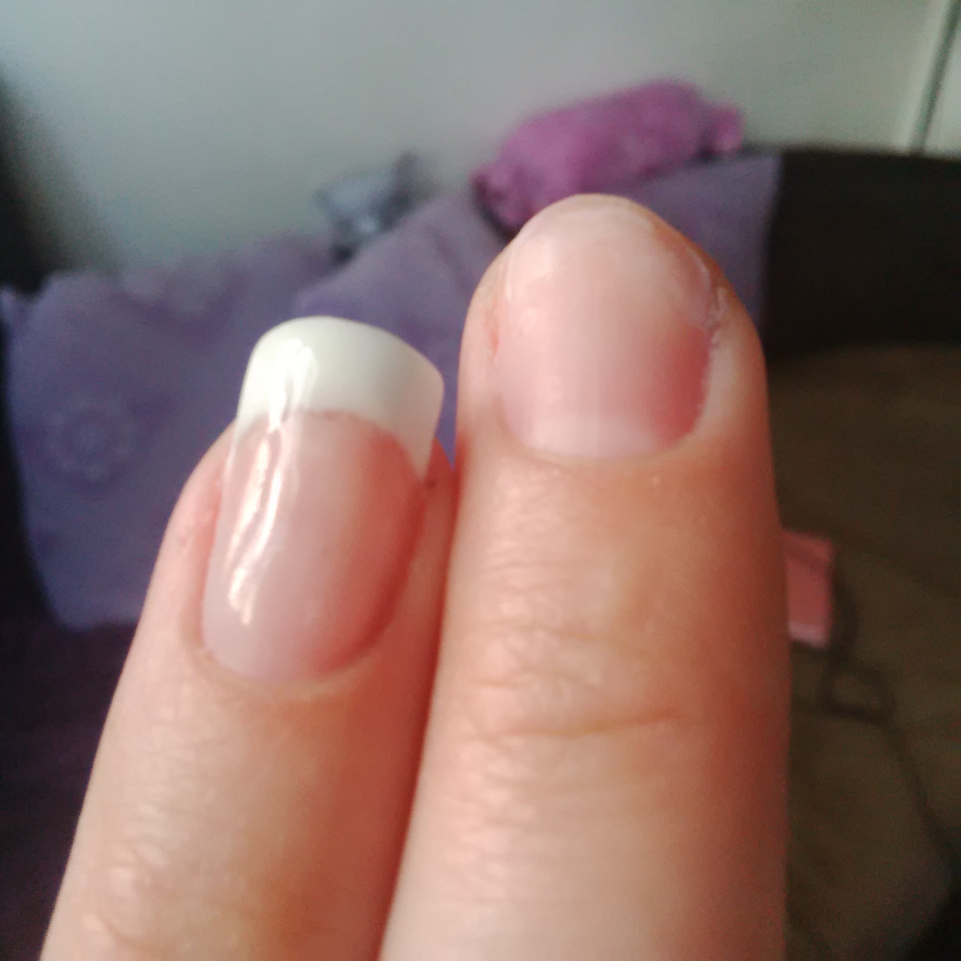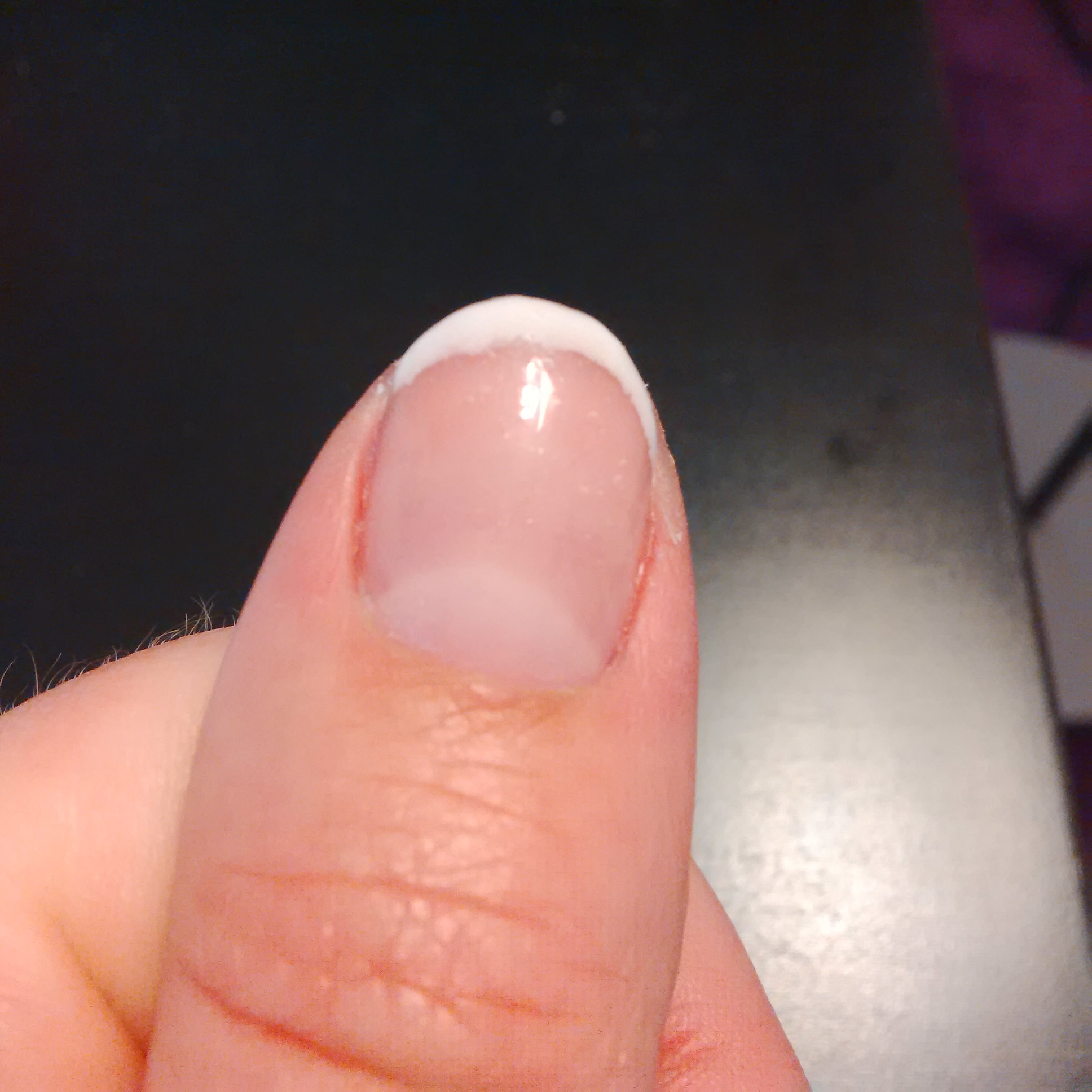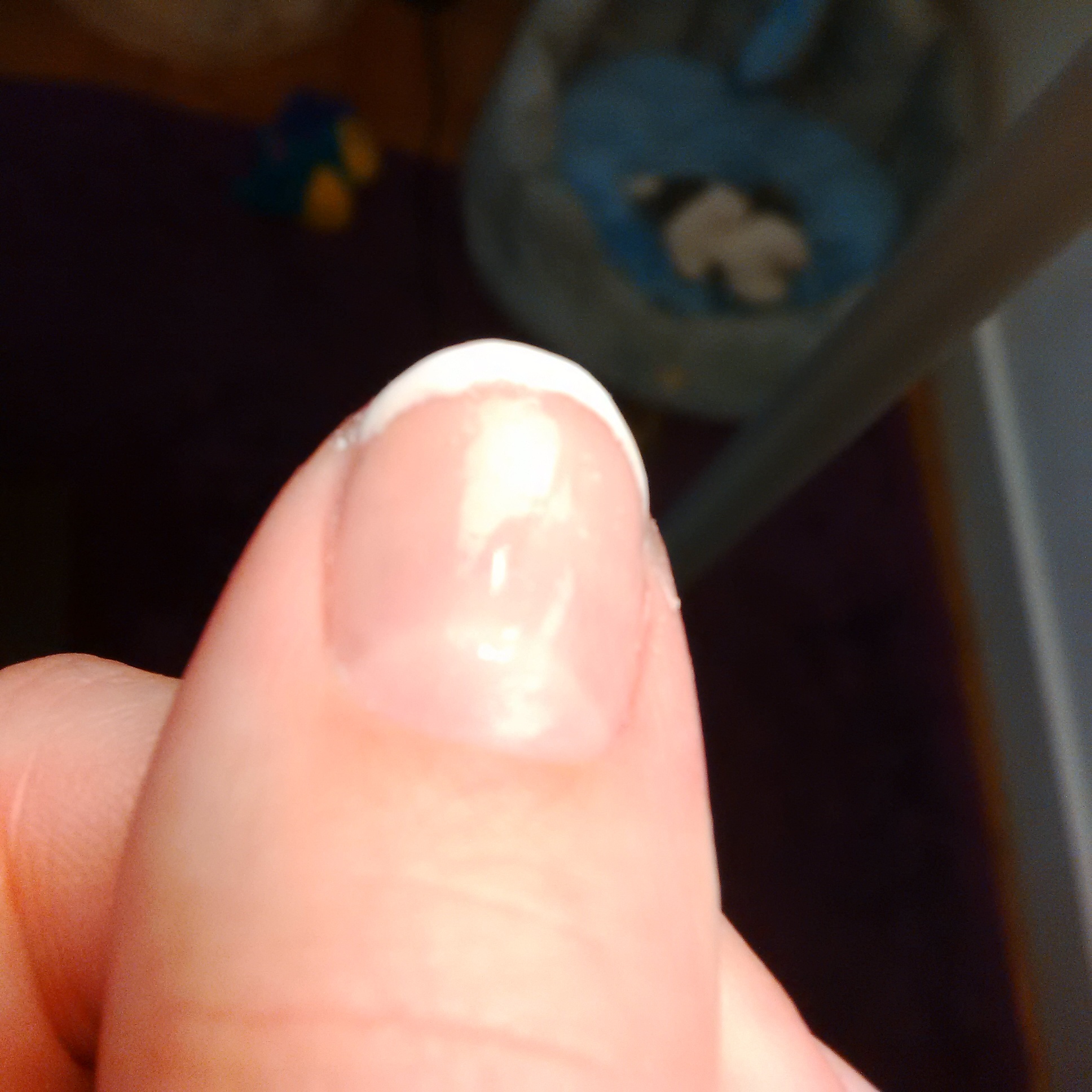 L'ongle n'est pas lisse, on dirait que le gel n'a pas prit sur le coté de l'ongle et un peu a d'autres endroit..
