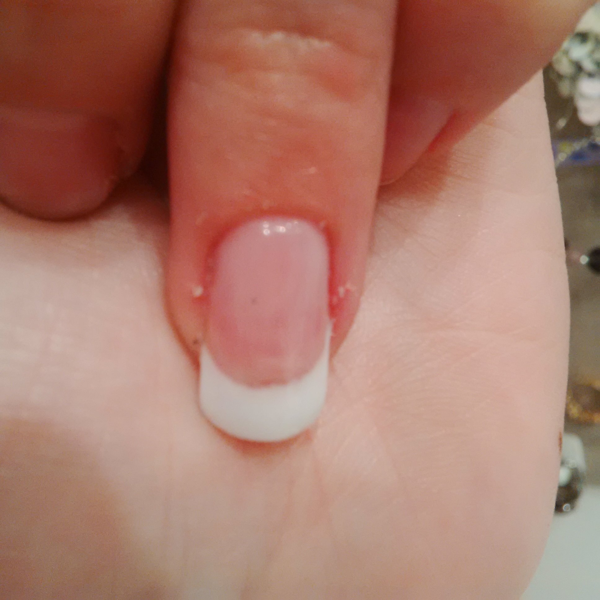 J'ai tenté la poste de capsules blanches sur 1 ongle, et ce coup ci ça a l'air d'avoir marché !