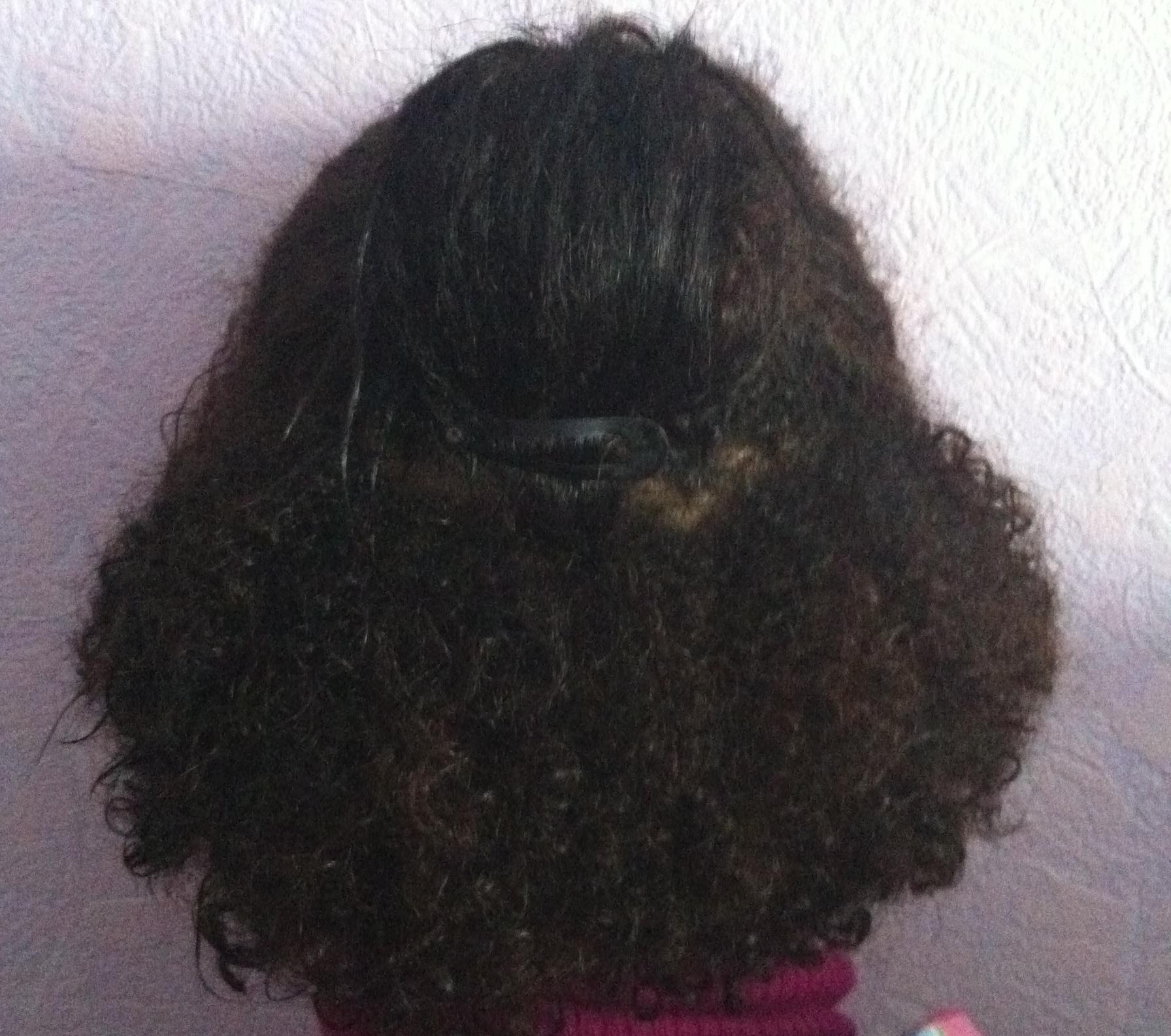photo 4 : cheveux sans brushing apres Rio keratine 1. Entre temps, mes cheveux étaient redevenus très très bouclé-frisé à certains endroits mais le Rio les a bien détendu.