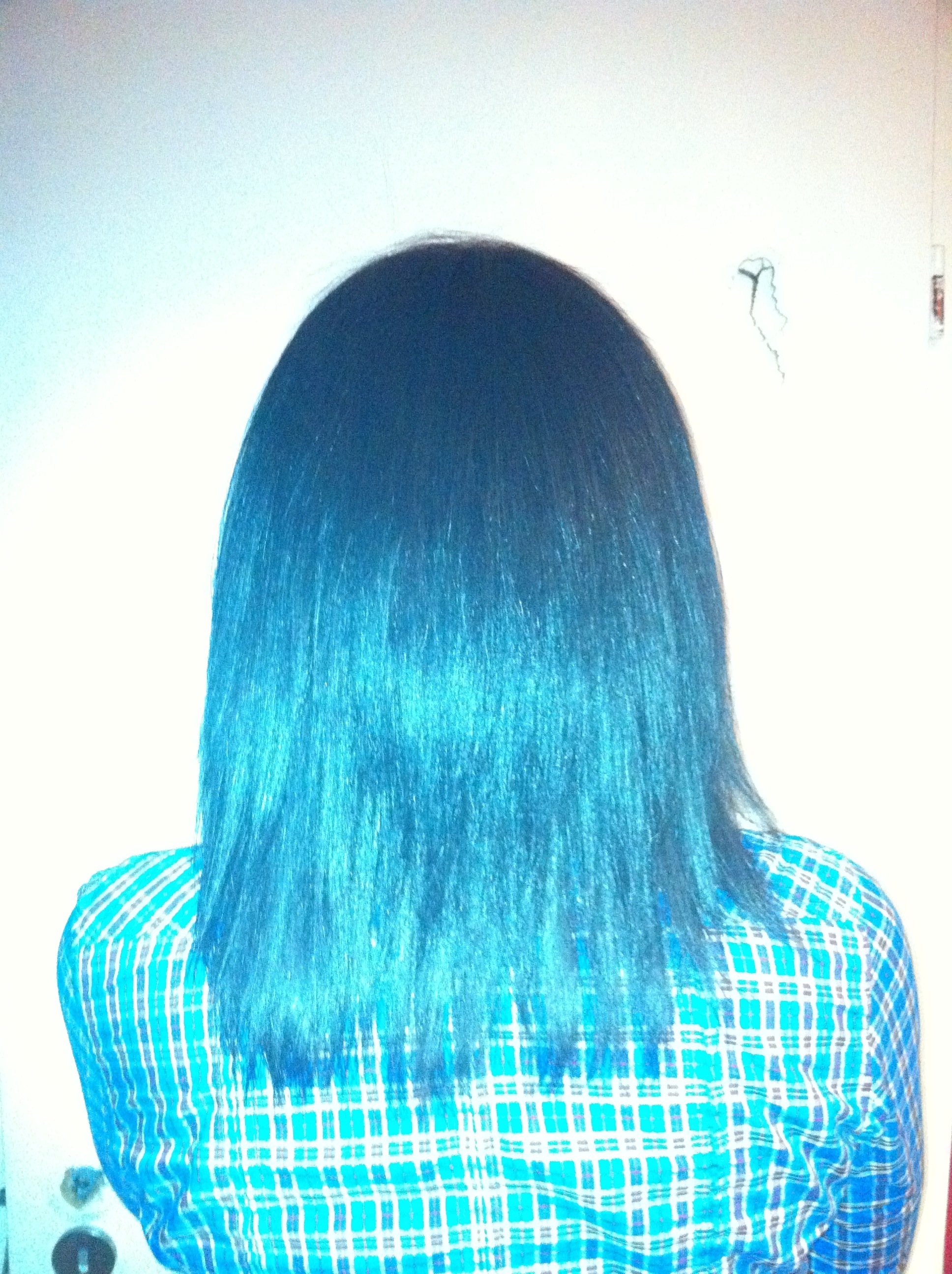 photo 3: Après lavage sans brushing. Mes cheveux ont vraiment été détendu mais pas partout de la même manière (cette photo a été prise avant la 2 où j'ai coupé mes cheveux au carré)