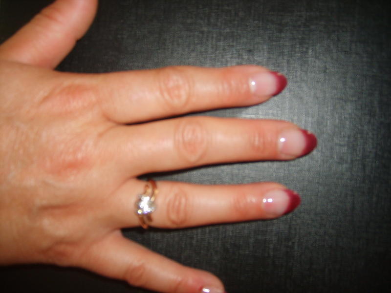 pour une premiere pose c'est reussi !!! apres on ne voit vraiment pas assez bien pour en dire plus, attention a ta french qu'elle soit bien reguliere et pareil partout et encor c'est surement la photo qui fait ca.