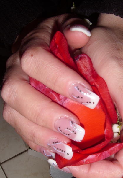 coucou les filles et bien je me suis désider a faire une premiere pose chablon sur mais main a moi !!!!et pas facile!!!! je trouve que le resulta et bien