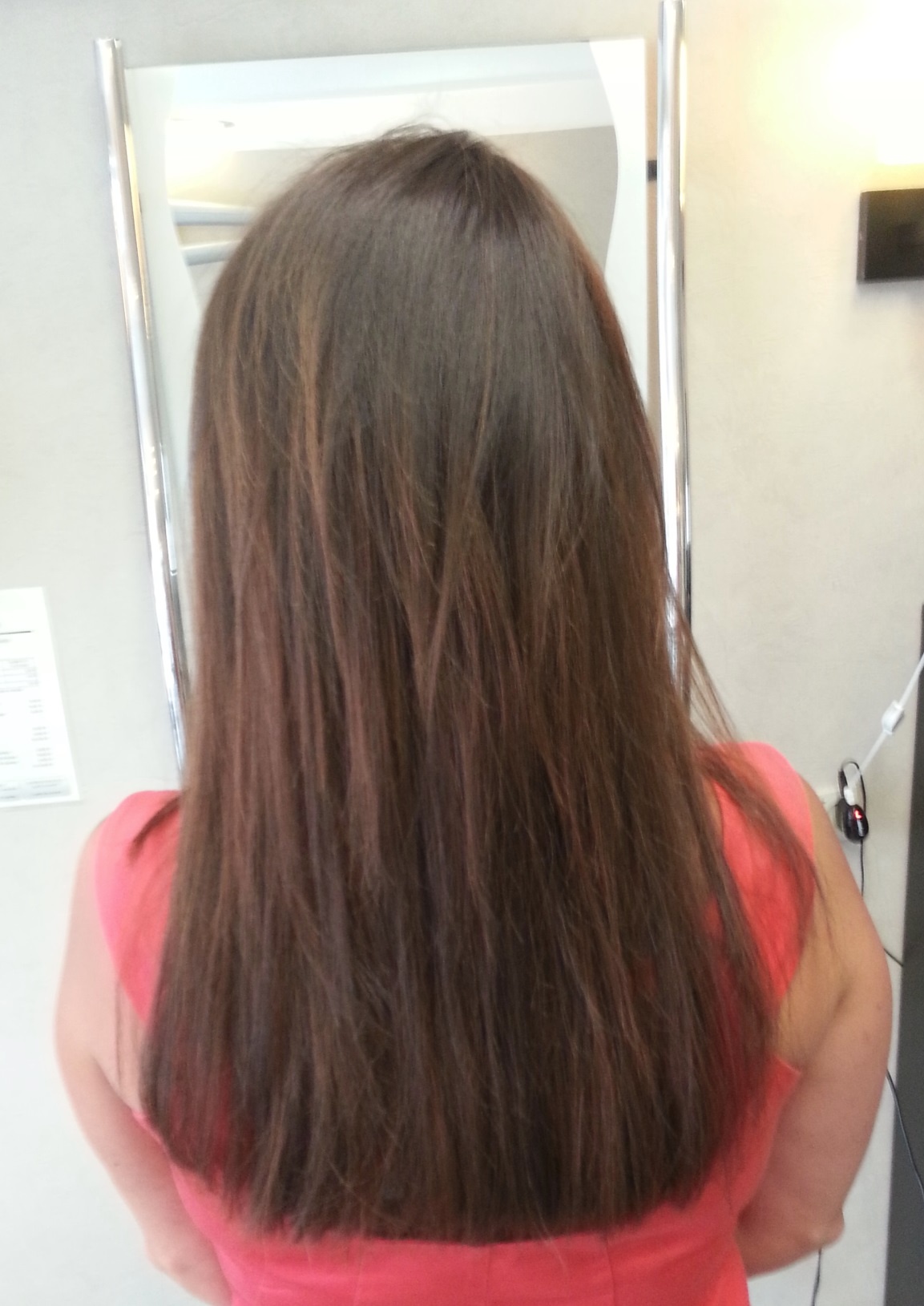 100 meches GIAMBERTONE 50/55cm sur cheveux fins recoupe a 40 45cm 2eme pose pour ma cliente apres une pose de 6 mois ... photo 1 et 2 : cheveux mi-longs tres fins photo 3 et 4 : apres coupe en version lisse photo 5 6 et 7 : apres coiffage ondulé