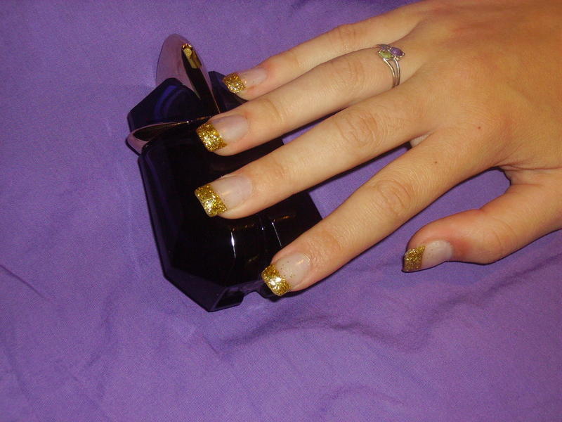 j'adore la couleur de tes paillettes, mais je trouve ta french un peu trop droite.
