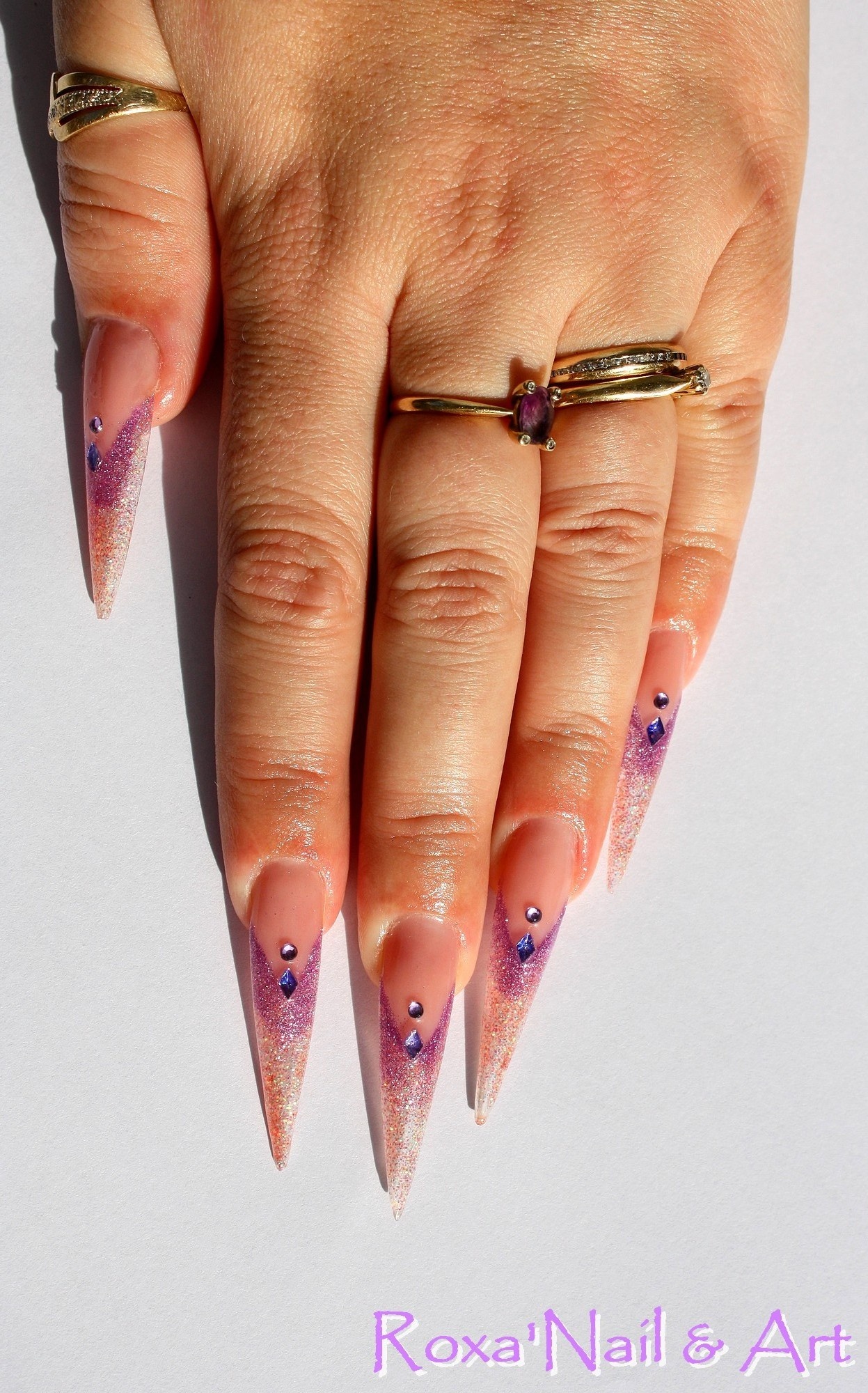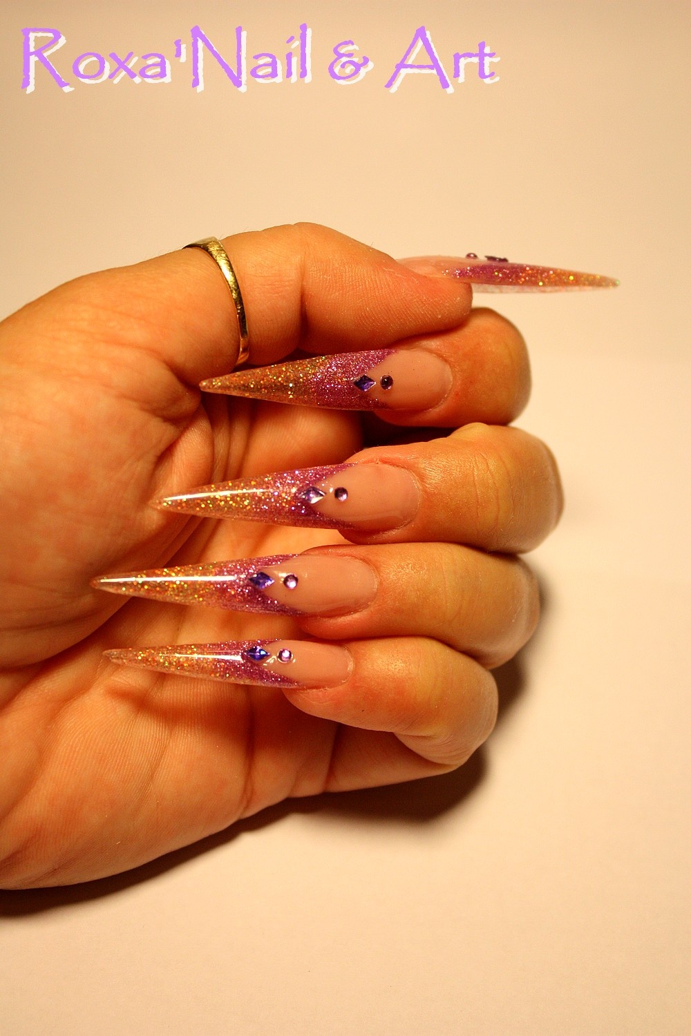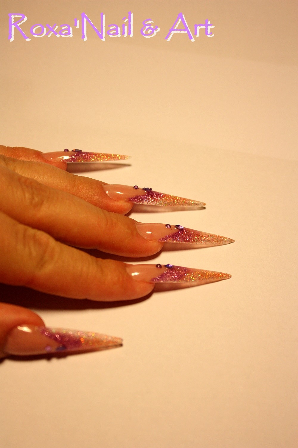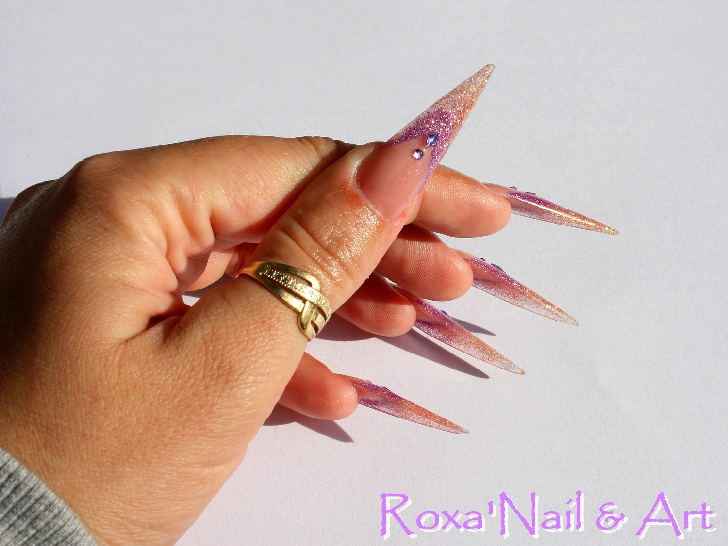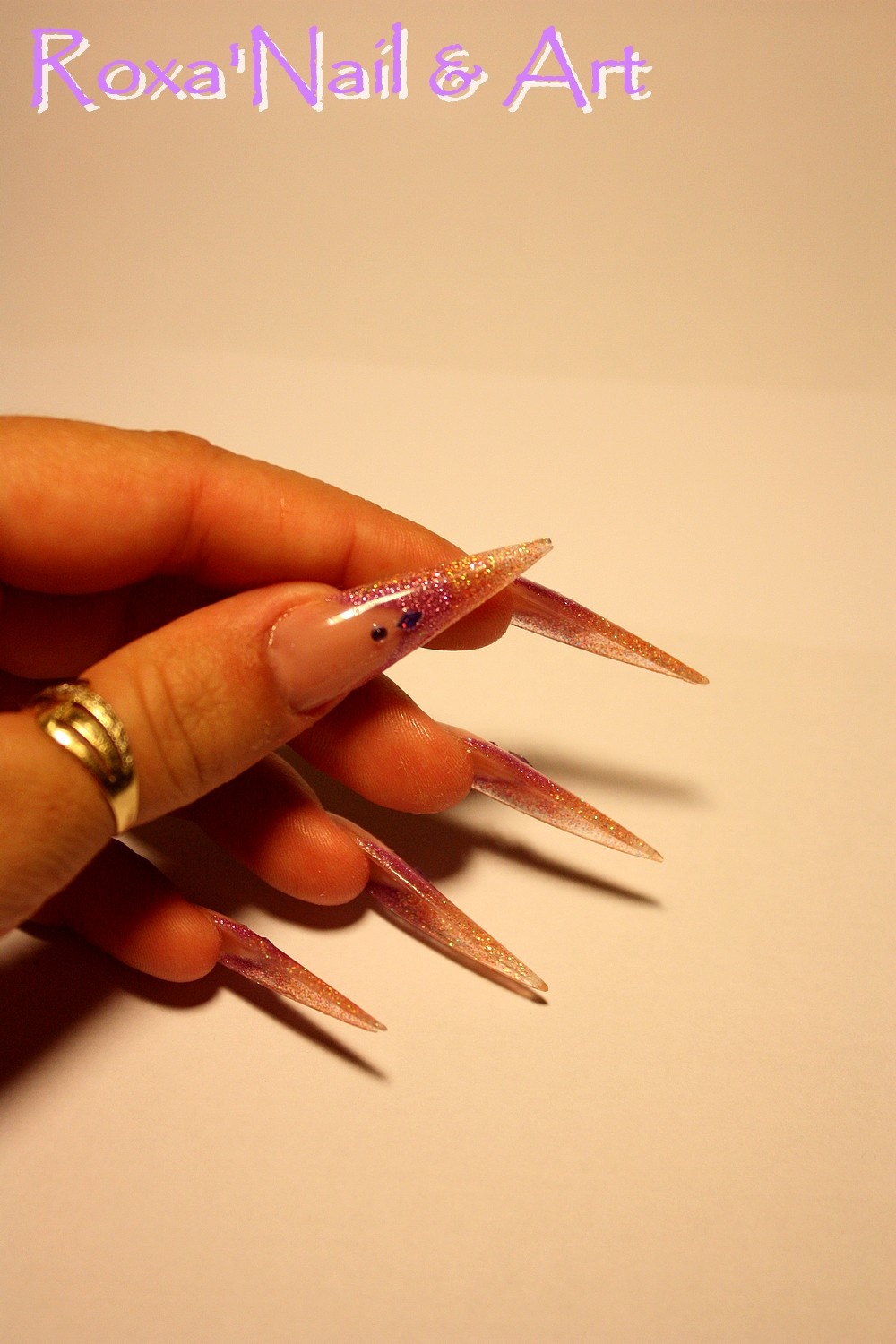 J'ai voulu tenter mes premiers stiletto sur ma main (bon c'est mon 2ème essai en réalité, mais le 1er date de décembre je crois, c'était en gel et sur ma main en plastique ^^).