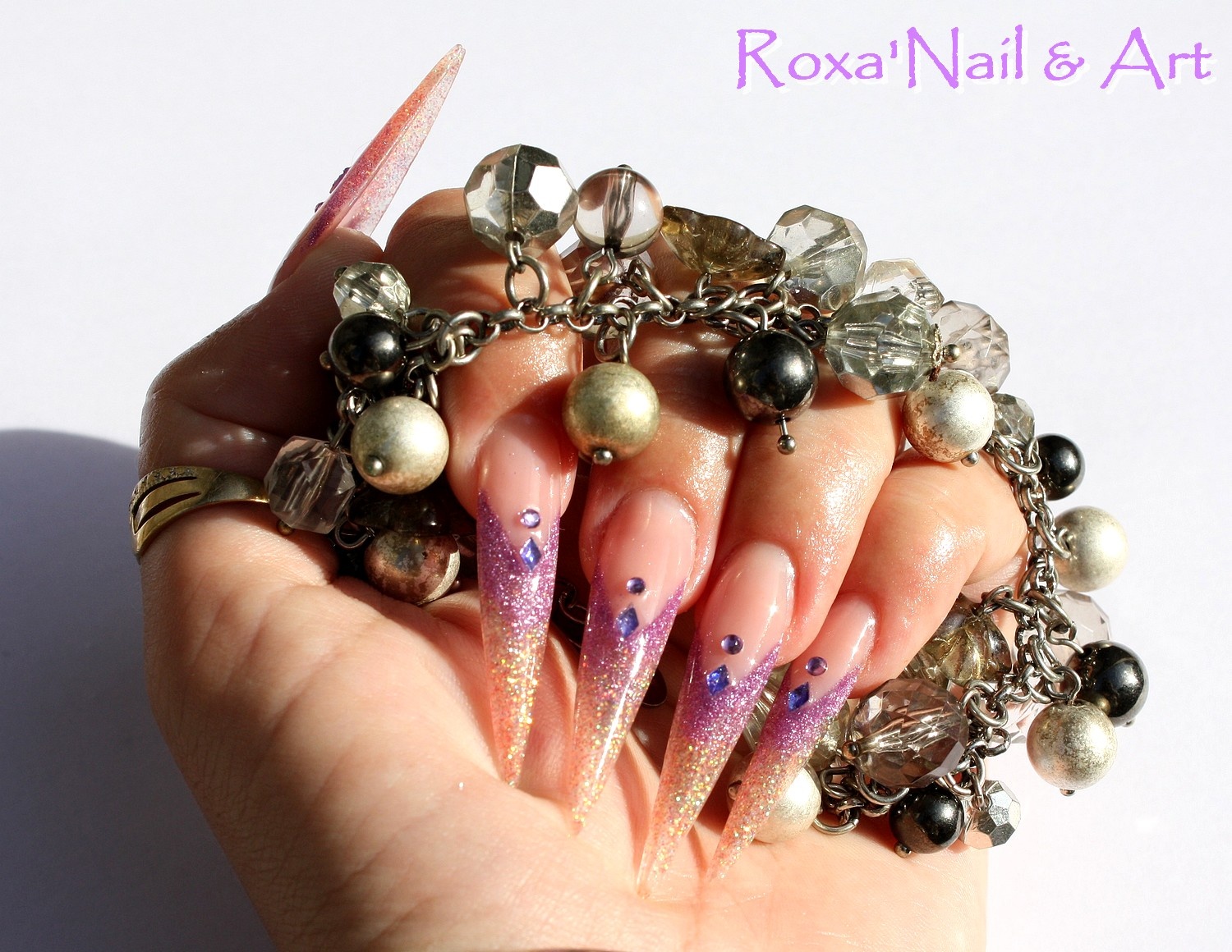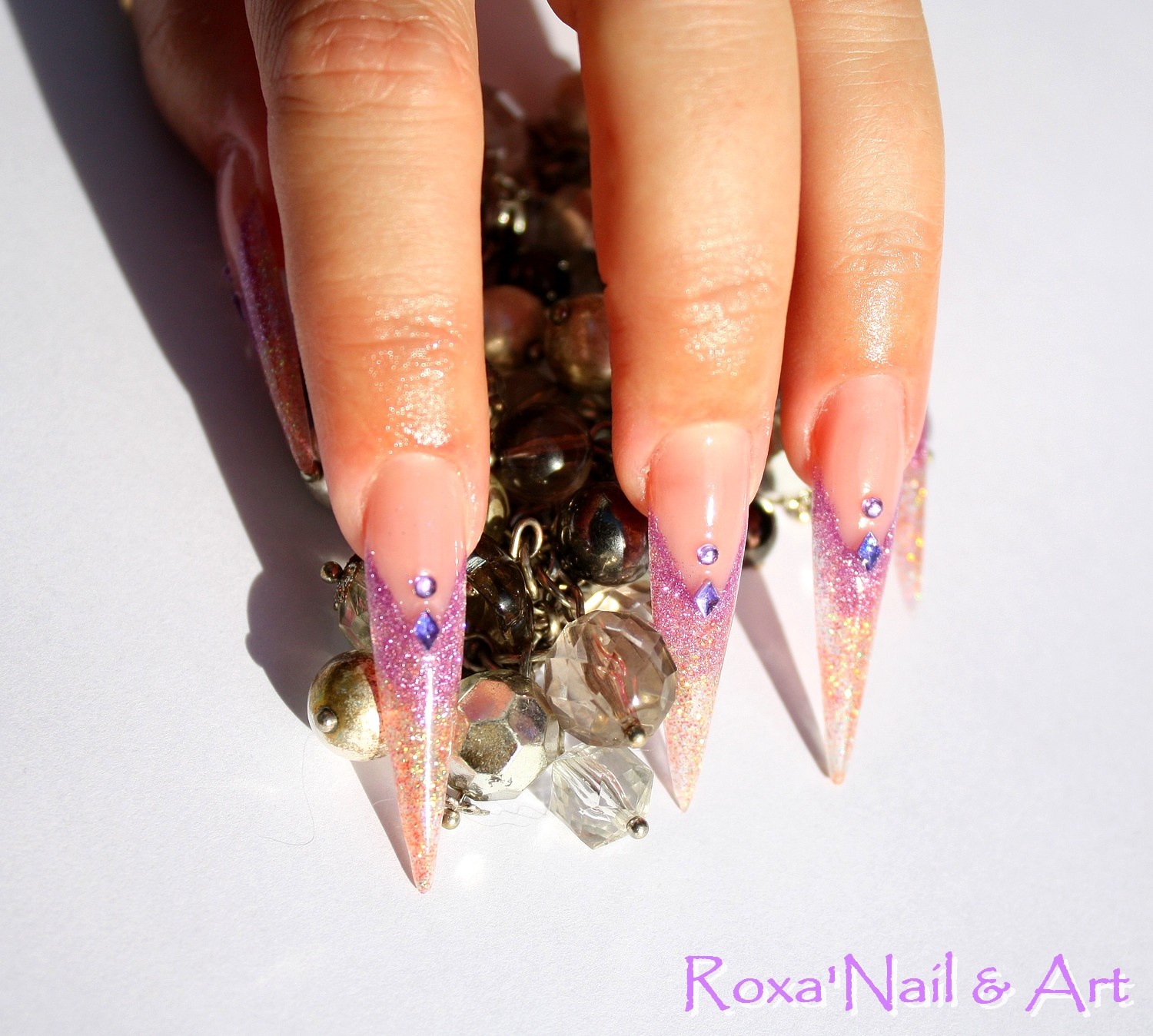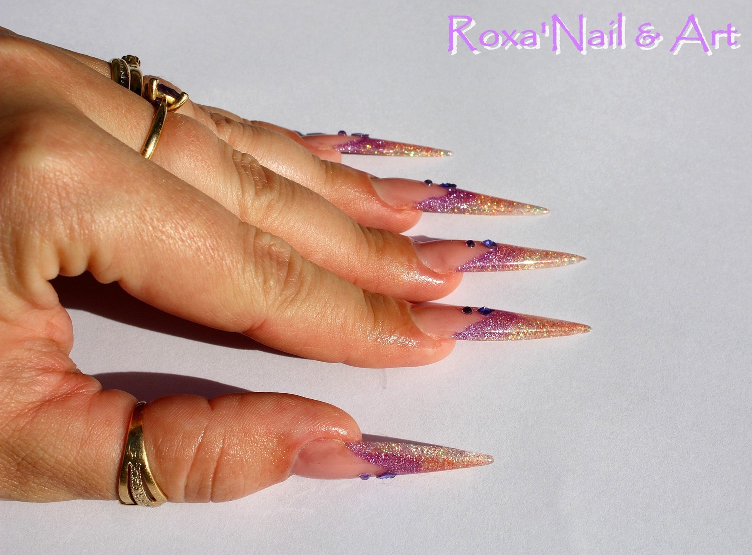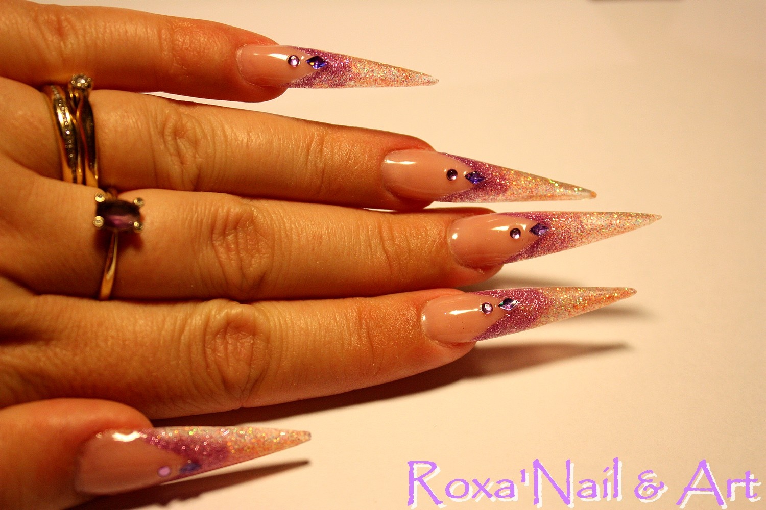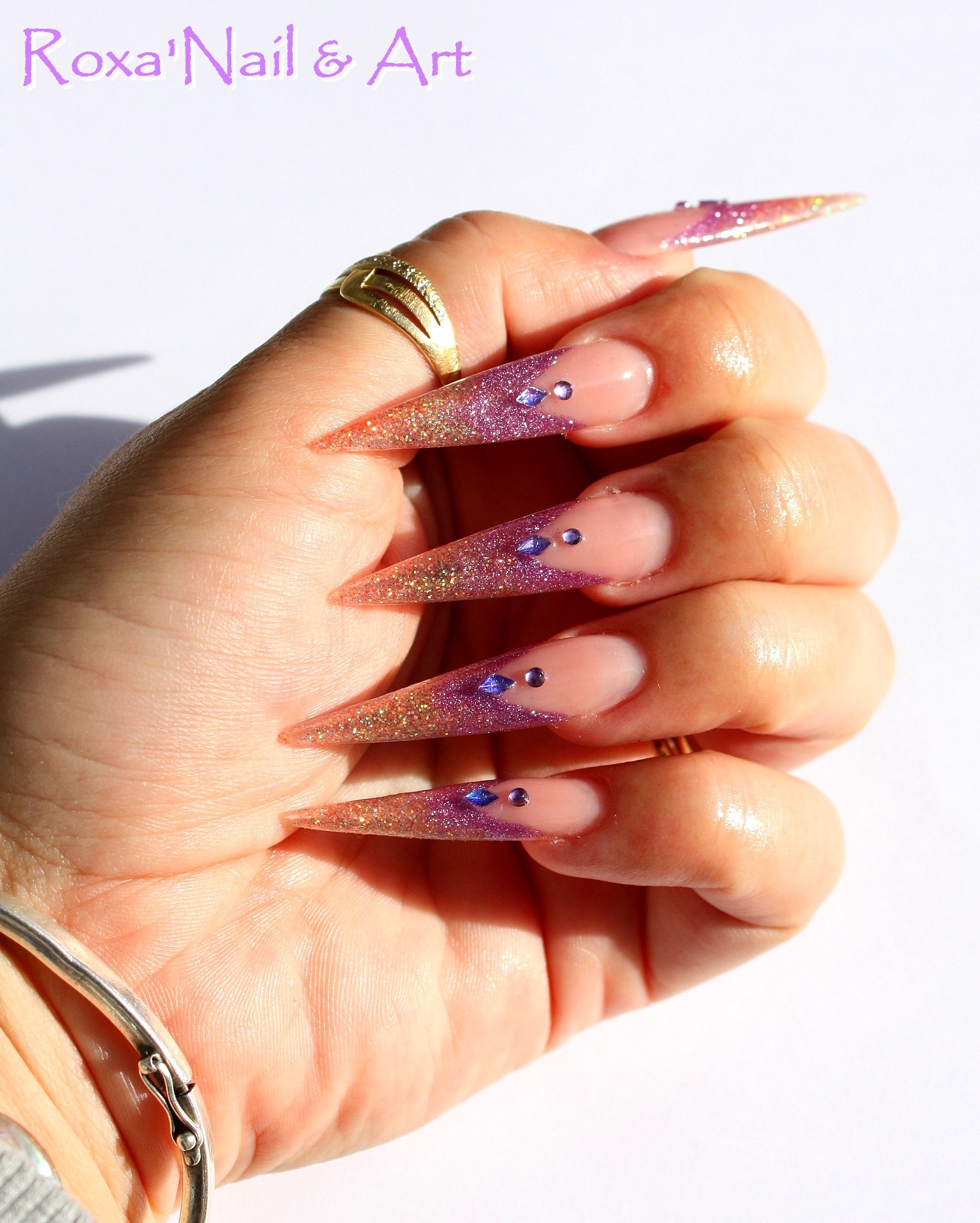 J'ai voulu tenter mes premiers stiletto sur ma main (bon c'est mon 2ème essai en réalité, mais le 1er date de décembre je crois, c'était en gel et sur ma main en plastique ^^).