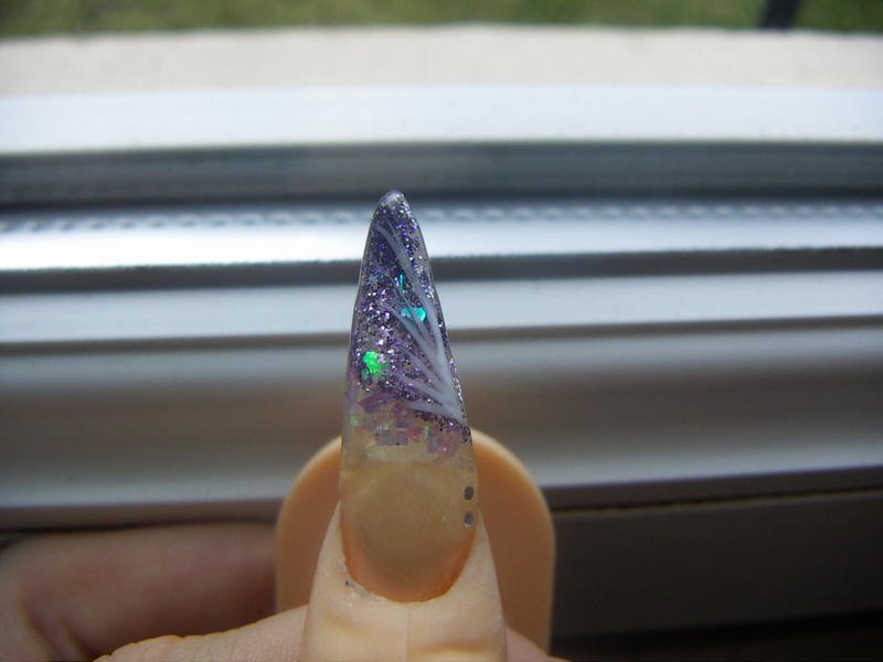 paillettes violettes , parme ,mylars strass et petits traits au vernis blanc!