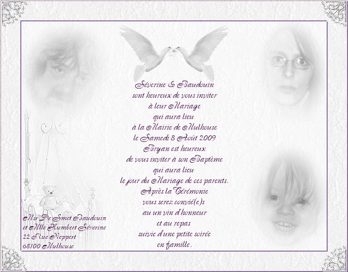 1er Exemple Pour Mon Faire Part De Mariage Ainsi Que Le Bapteme De Notre Fils