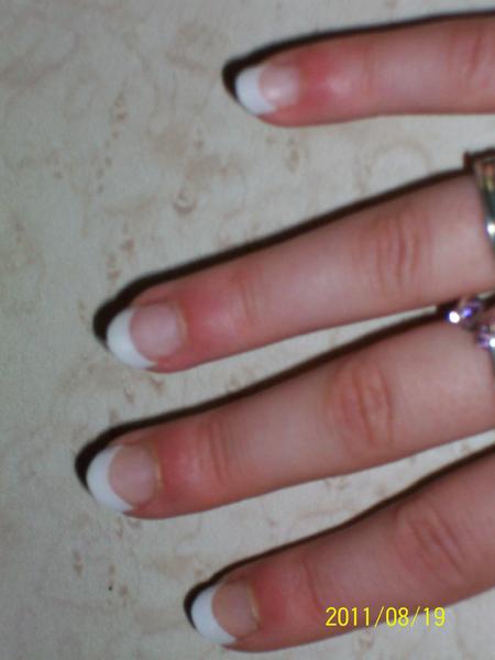 Alors tout est à revoir. Tu as mis des capsules trop grandes, les // pas assez limées, il n'y a pas de bombé, d'ailleurs on dirait que tu n'as pas mis de gel du tout. Je ne pense pas que ta pose va tenir.