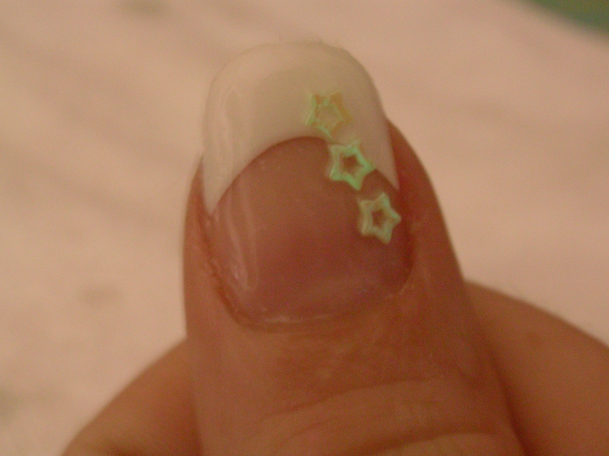 Voici ce que je viens de faire ce soir, la forme du sourire est trop en cercle sur ces capsules, en j'ai eu un problème de gel, en fait j'ai acheté un kit sur ebay et j'ai un gel 1 et 2 mais puis je remet le gel 1 mais la texture n'est pas assez epaisse je trouve.