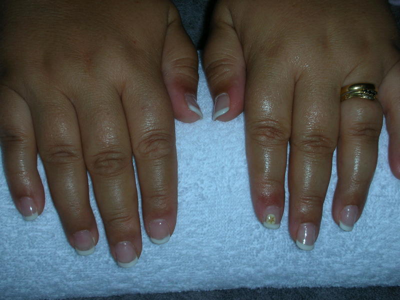 Et voilà ce matin, en 1h30... mon amie avait 3 ongles (pousse et majeur droit + Annulaire gauche) cassés j'ai donc fait une pose compléte, et j'ai limé légérement les autres et remis du gel de finition pour une pose plus net.