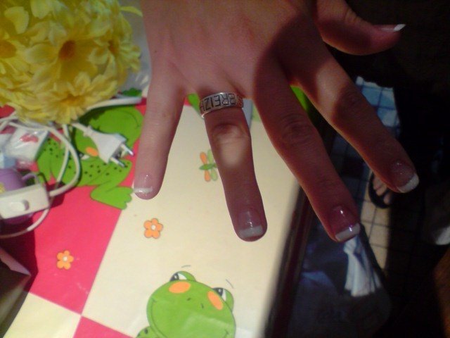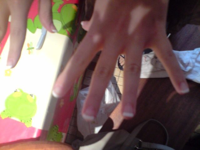Je vois juste sur la premiere photo qu'il a du gel sur les cuticules (le gel french) ou du moins si c'est pas les cuticules, il faut redonner un coup de lime.