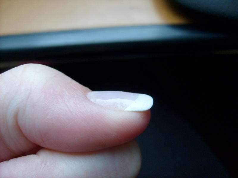 Tu n'as pas mis ton produit correctement, il y a des endroits qui ne semblent pas être recouverts de matiere. - Il ne faut certes pas toucher les cuticules mais il faut etre minutieuse et recouvrir parfaitement la surface de l'ongle.