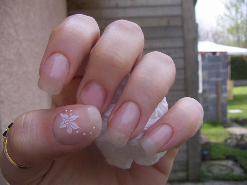 voici ma main gauche je n'ai pas fait mon majeur car je l'ai retourné la semaine derniere ( j'ai peur de poser dessus). c'est ma premiere pose!!!!