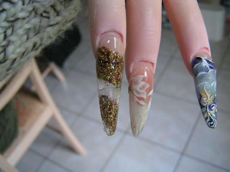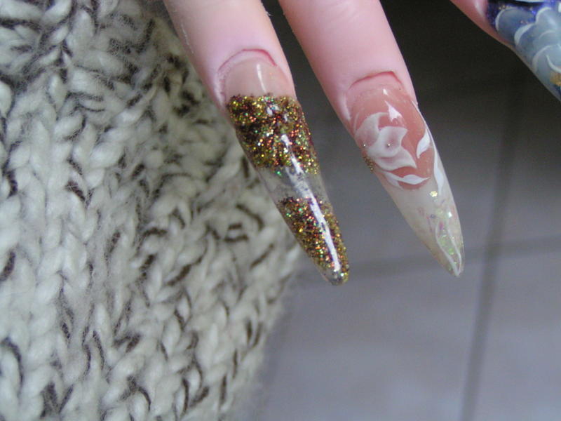 la seconde en gel, paillettes or holographique et marron de chez FRAMENAILS..