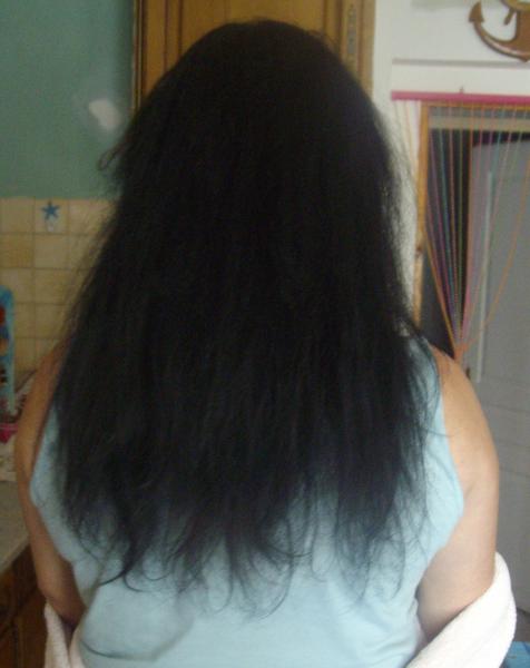 Faut dire aussi, que les cheveux remontaient un peu car on les a d'abord lavé et seché au seche cheveux en vrac..