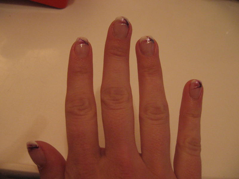 pas mal pour une deuxième, j'espère faire aussi bien quand j aurai reçu mes produits !!!!Pose résine avec chablons + test nail art (très pratique pour cacher la misere de la french lol)