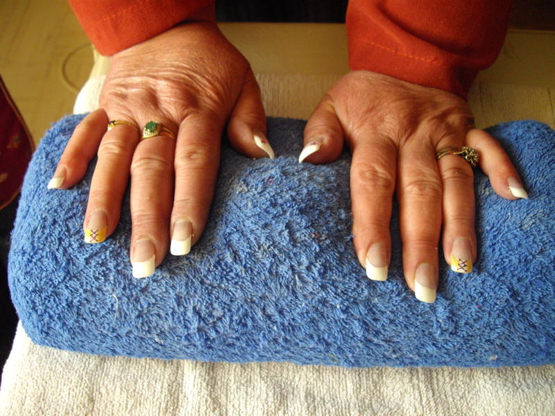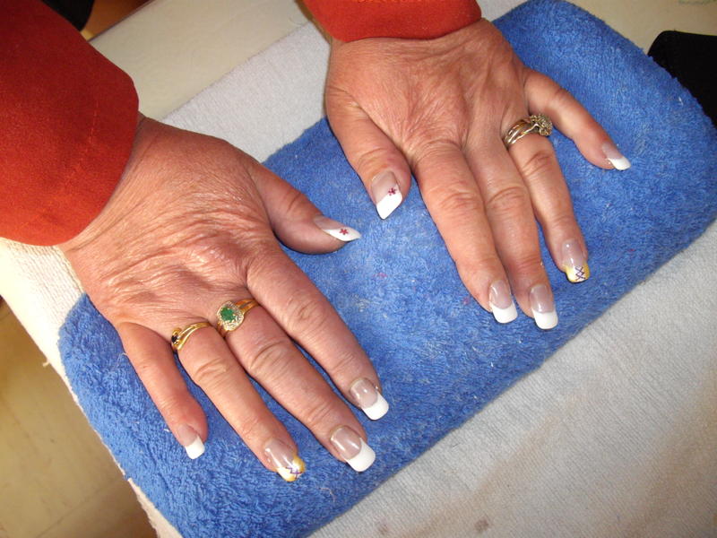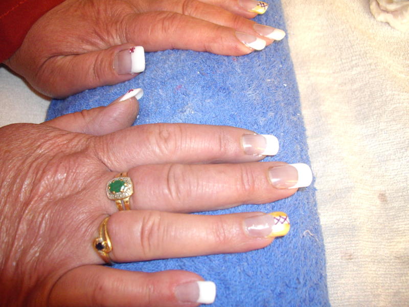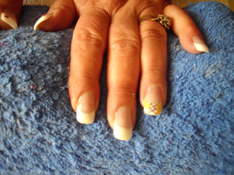 Voici ma 2 eme pose mais la 1ere sur une "cliente" (ma maman) elle a les ongles NON rongés mais j'ai ete obligés de mettre des tips car elle a les ongles cassants et "malformés" sur certains ongles