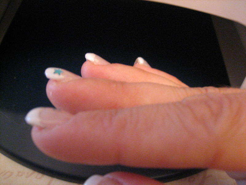 je ne peux pas toujours venir sur le forum mais ce soir je suis là et j'en profite: j'ai réalisé ma 2eme pose (sur ma main droite uniquement pour l'instant) en suivant vos conseils de y'a 15 jours mais je trouve pas ça super...:arghh:enfin, je persévère je n'en suis qu'au début.