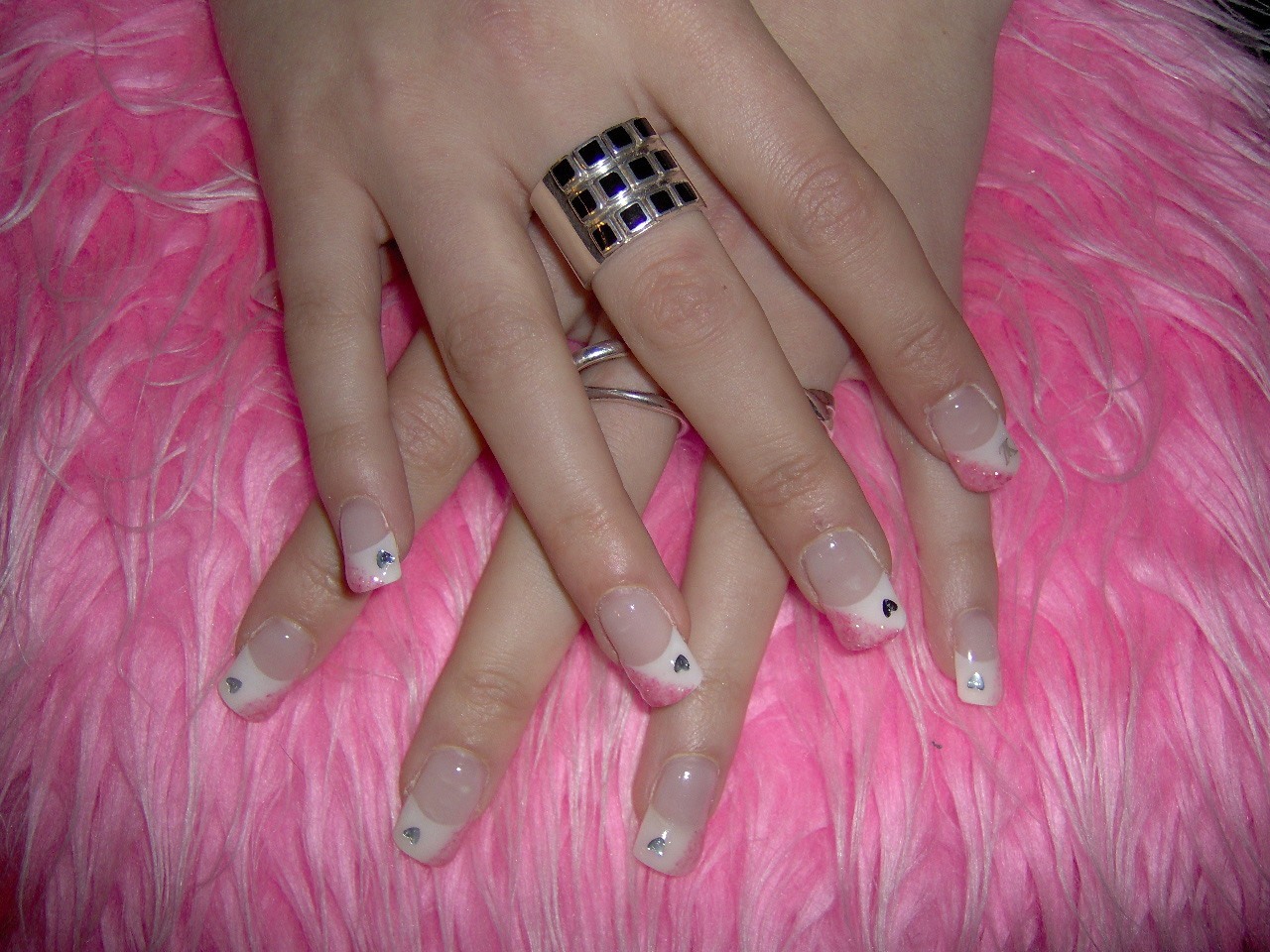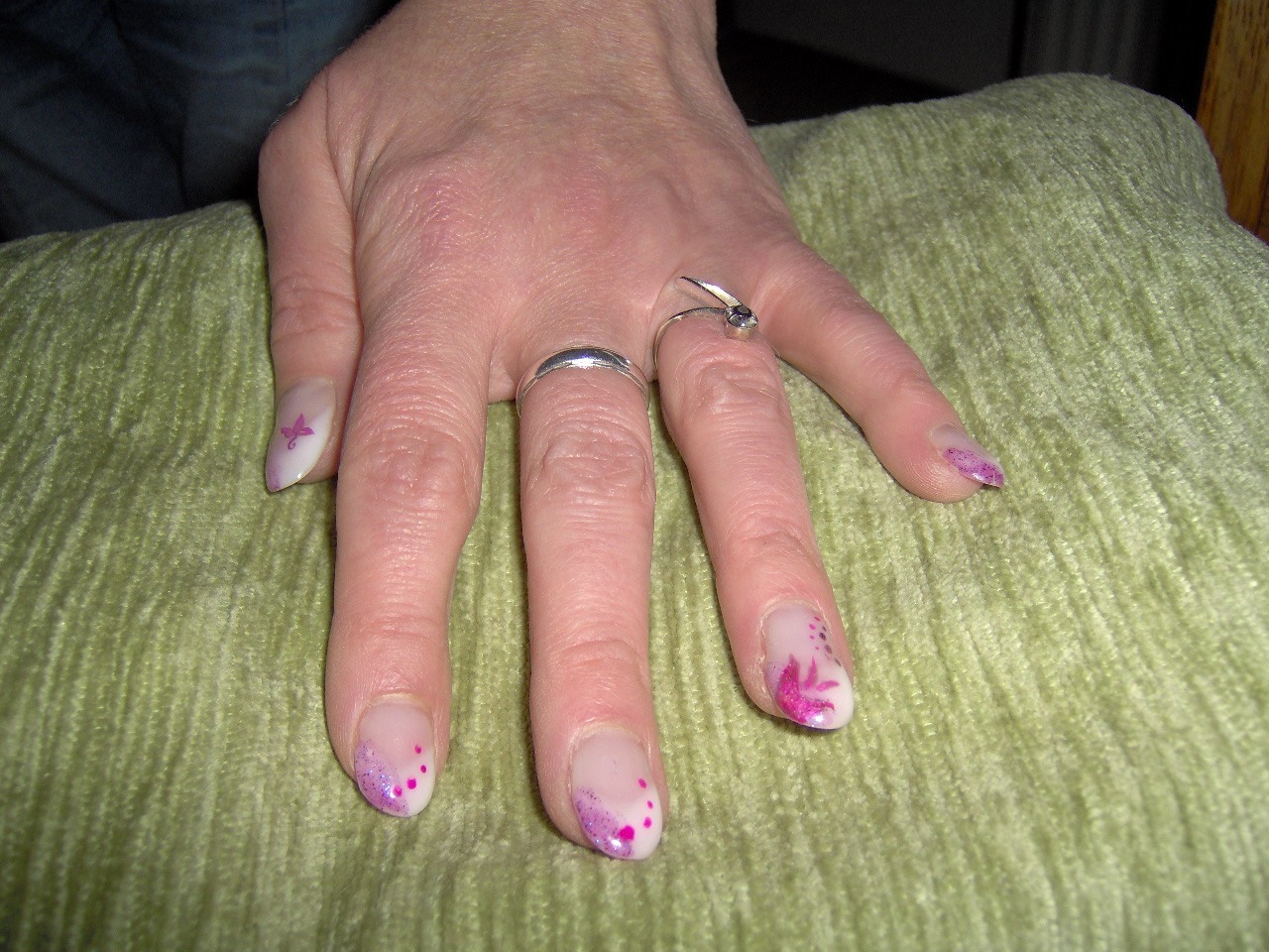 La deuxième, c'est une pose au chablon sur la main gauche et avec tips sur la droite. Je trouve la french trop épaisse mais j'ai un peu de mal avec ce gel french! Et j'ai l'impression que des ongles rebiquent un peu vers le haut, je ne sais pas à quoi c'est dû ? Et j'aurais dû plus limer les côtés.:fuyou_2: