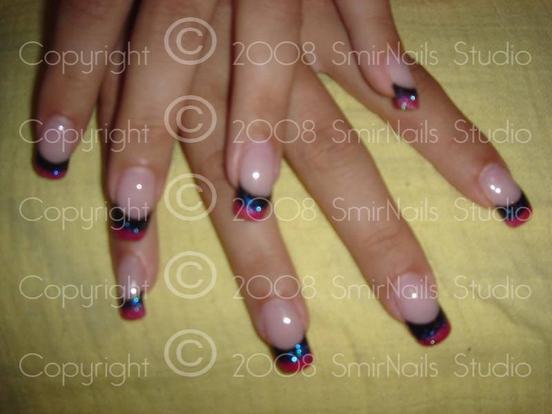 French en dégradé de noir et rouge framboise (( avec reflet bleuté ))