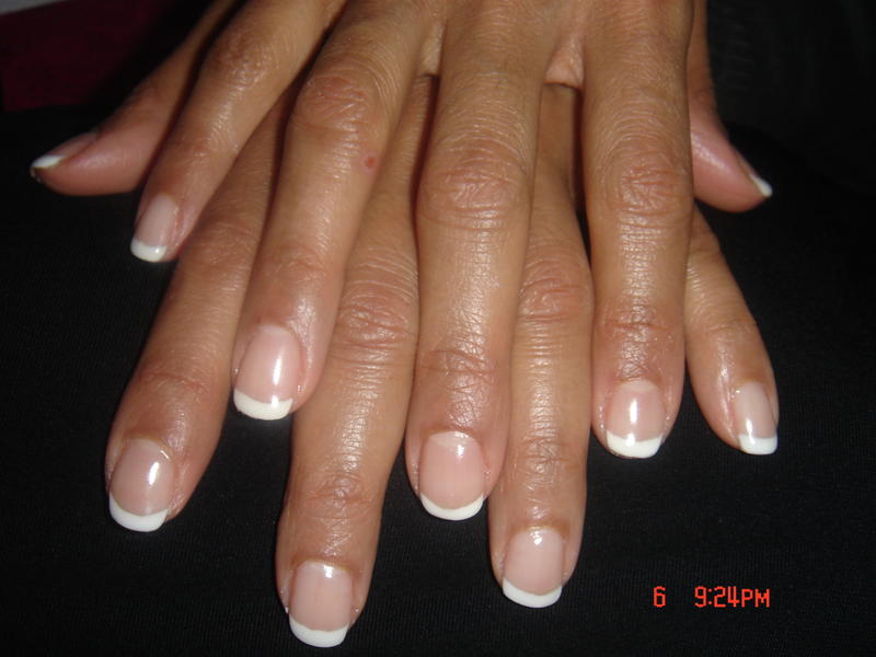 Sur la première, la french est trop large, ça ne fait pas joli. Et les parallèles ne sont pas parallèles. L'ongle s'évase.