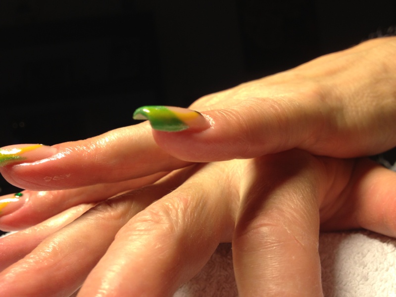 Voilà le remplissage sur ma maman. Reconstruction de 3 ongles (majeure,auriculaire main gauche et annulaire main droite). Bein pour une fois contente du rendu de mes reconstructions ...