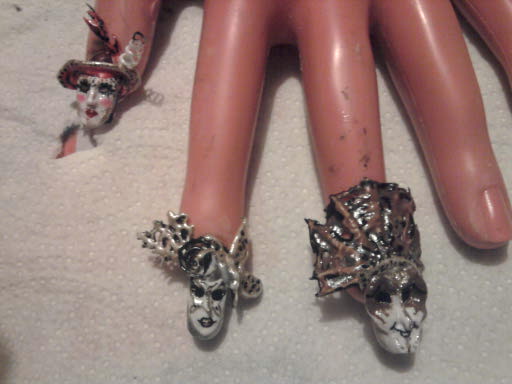 Re : 4d gel uv masque carnaval numéro 3 Je voulais mettre plus de couleur mais je n'est que des vernis et il sont translucide ducoup sa ne couvre pas et puis je m'ennuis lol