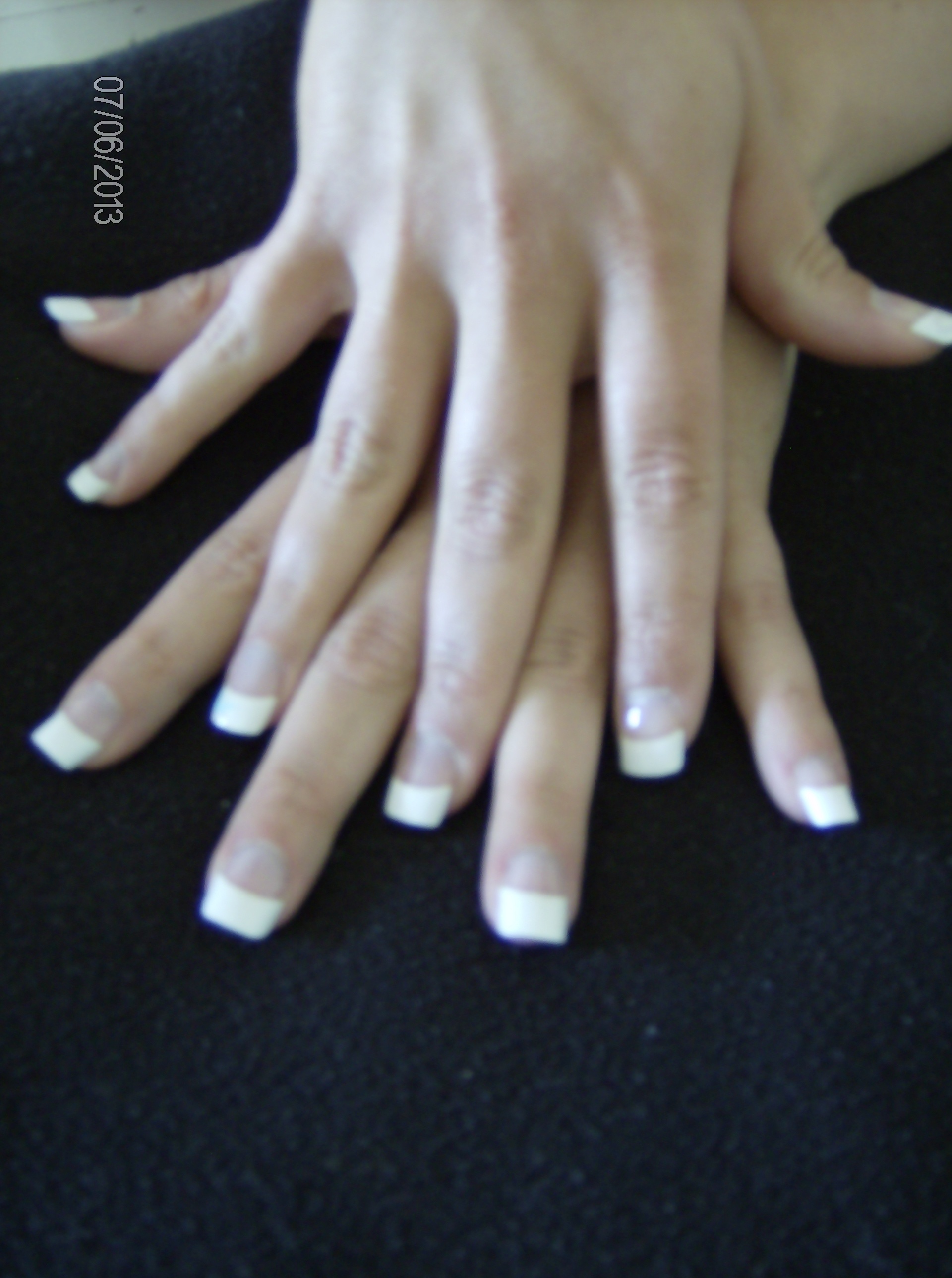 Les proportions de tes french ne sont pas respectées: 1/3 de french pour 2/3 de plaque, ce qui fait que ta pose n'est pas très harmonieuses. Visiblement, pas de bombé non plus: essentiel pour la tenue!