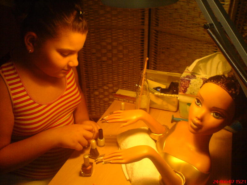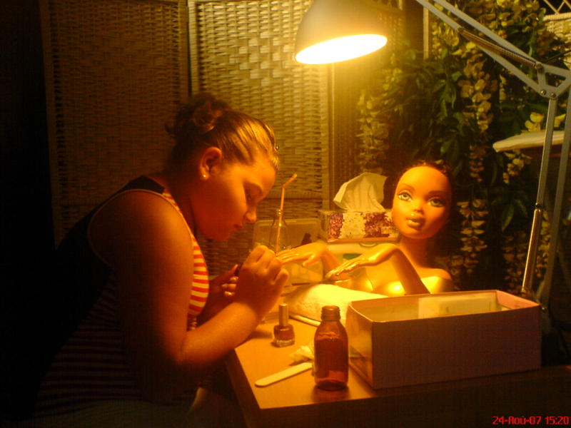Elle m'a demandé de collé des tips sur sa tête à coiffé Brats:32-ironic: et m'a demandé également toute un série de vernis à ongles. Quelque temps plus tard j'ai été voir ce qu'elle fesait et je trouve cela géniale je voulais donc le partager avec vous!!!!!