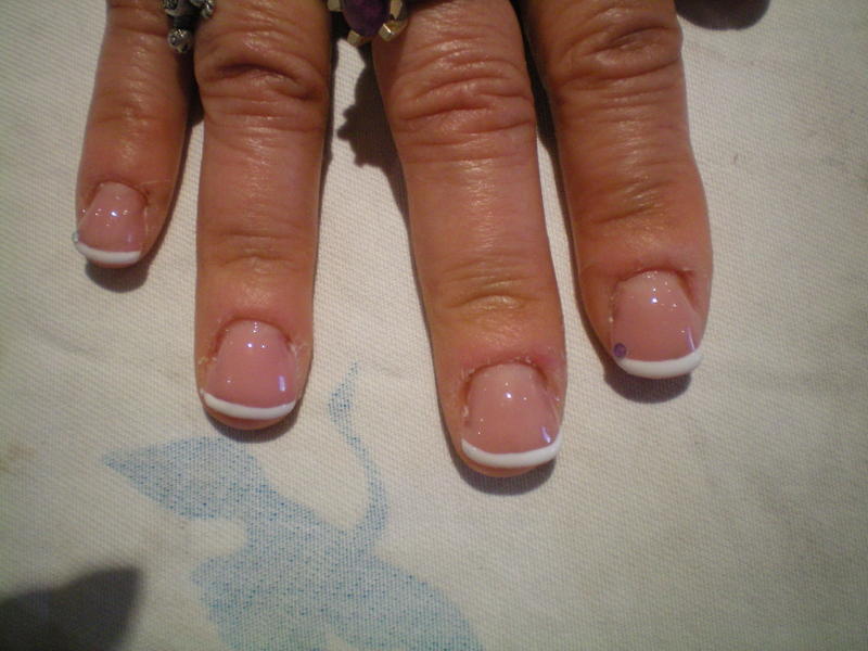pour la french, je te conseil de mettre une fine couche de couvrante puis faire une french et apres le bombe' ou faire en reverse (a voir Lien externe : {forum.manucure.info/pas-pas-et-videos/69771-pas-pas-french-reverse-sur-capsules.html} a la place du capsule tu mets une fine fine fine couche de gel ) car la sur la photo on voit bien la difference (un genre d escalier)