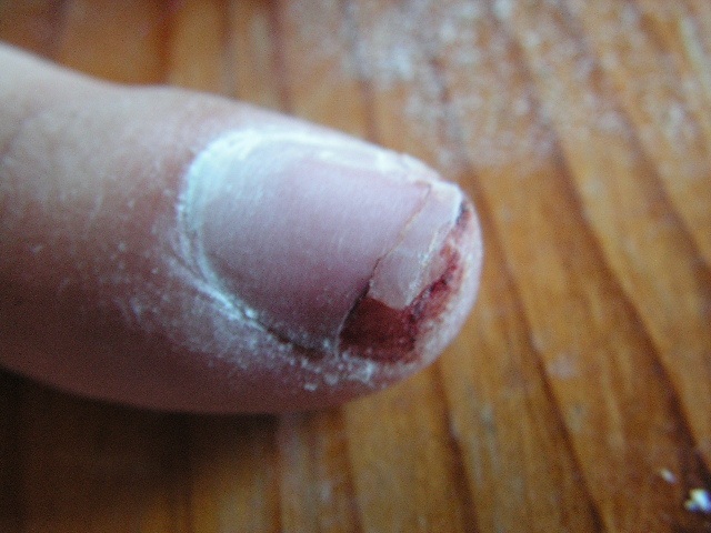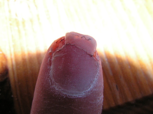 ,une fois rentrée a la maison, j'ai désinfecté, coupé l'ongle avec la guillotine et ensuite limé pour enlever le gel et pouvoir enlever l'ongle mais j'ai pas pu tout enlever, trop mal et trop profond