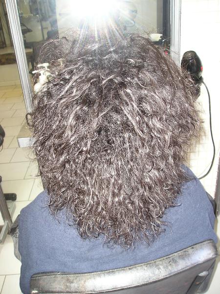 Modèle 1 Une métisse avec un coréen timoé qui date de 3 mois, j'ai juste travaillé la racine en repousse frisotis nerveux et mousseux et le soir même elle a eue une poussée de fièvre avec transpiration à mort... bref résultat premier shamp séchage naturel frisotis et mousseux disparu.
