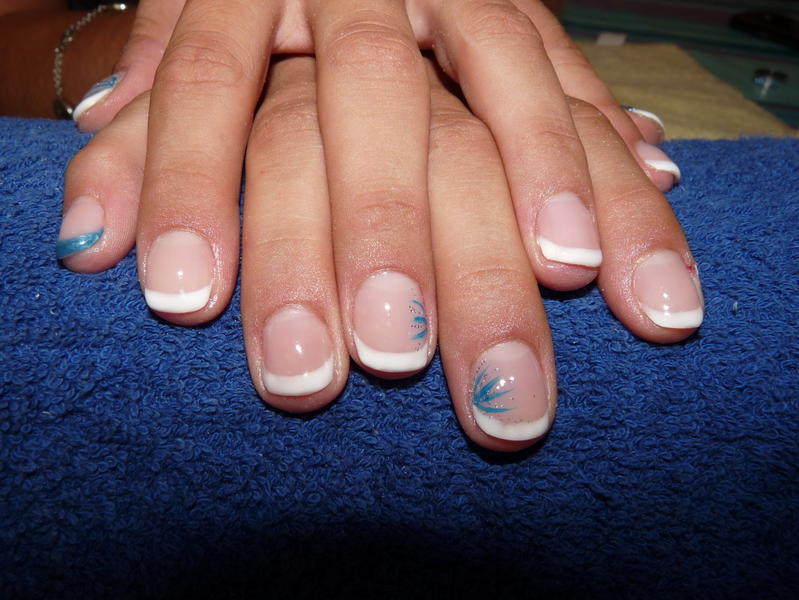 Kikouuuu, le bleu c'est pas ma couleur.... et bah j'adore ta déco... y'a du bleu mais j'adore, c'est soft et le bleu est joli. Le bombé est lèger, juste ce qu'il faut. Je ne remarque pas d'espace entre les cutis... très bien. Je pense que l'ensemble aurait fait vachement plus sympa sur des ongles un chouïa plus longs, mais là c'est vraiment propre à chacun.
