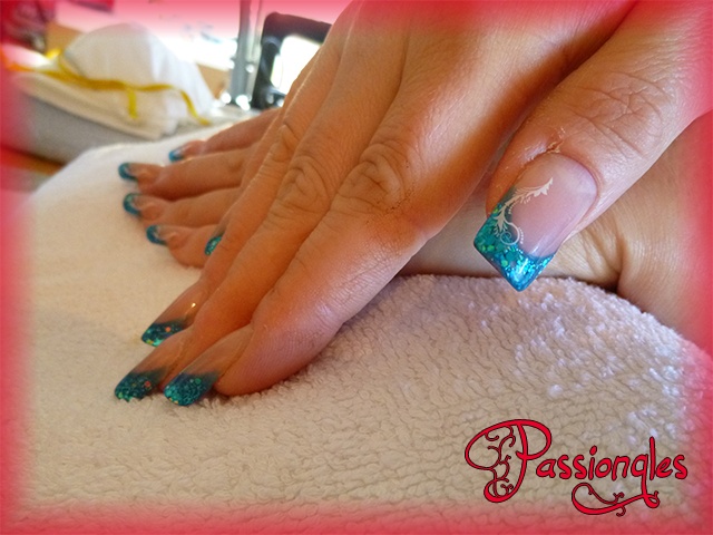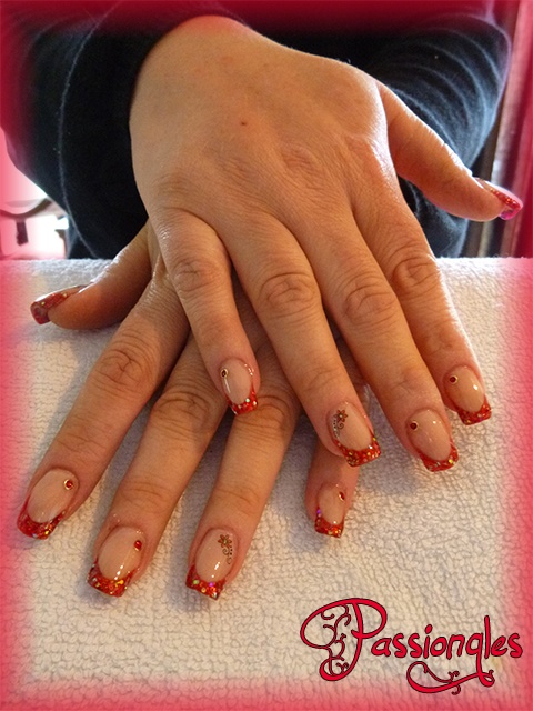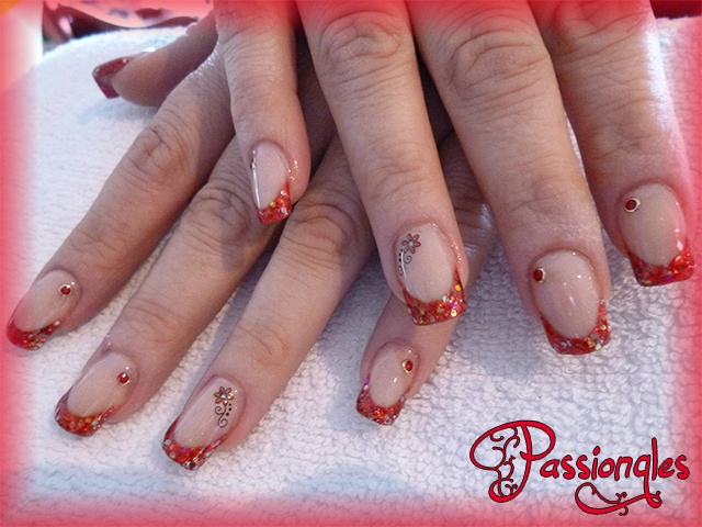 Elle ne peut plus se passer des paillettes ... alors après la pose bleu avec des paillettes bleu turquoise, ma cliente a voulu une pose rouge avec les paillettes rouges de la même collection que les bleu (starlight de chez Indigo)...... stickers de chez Claire's