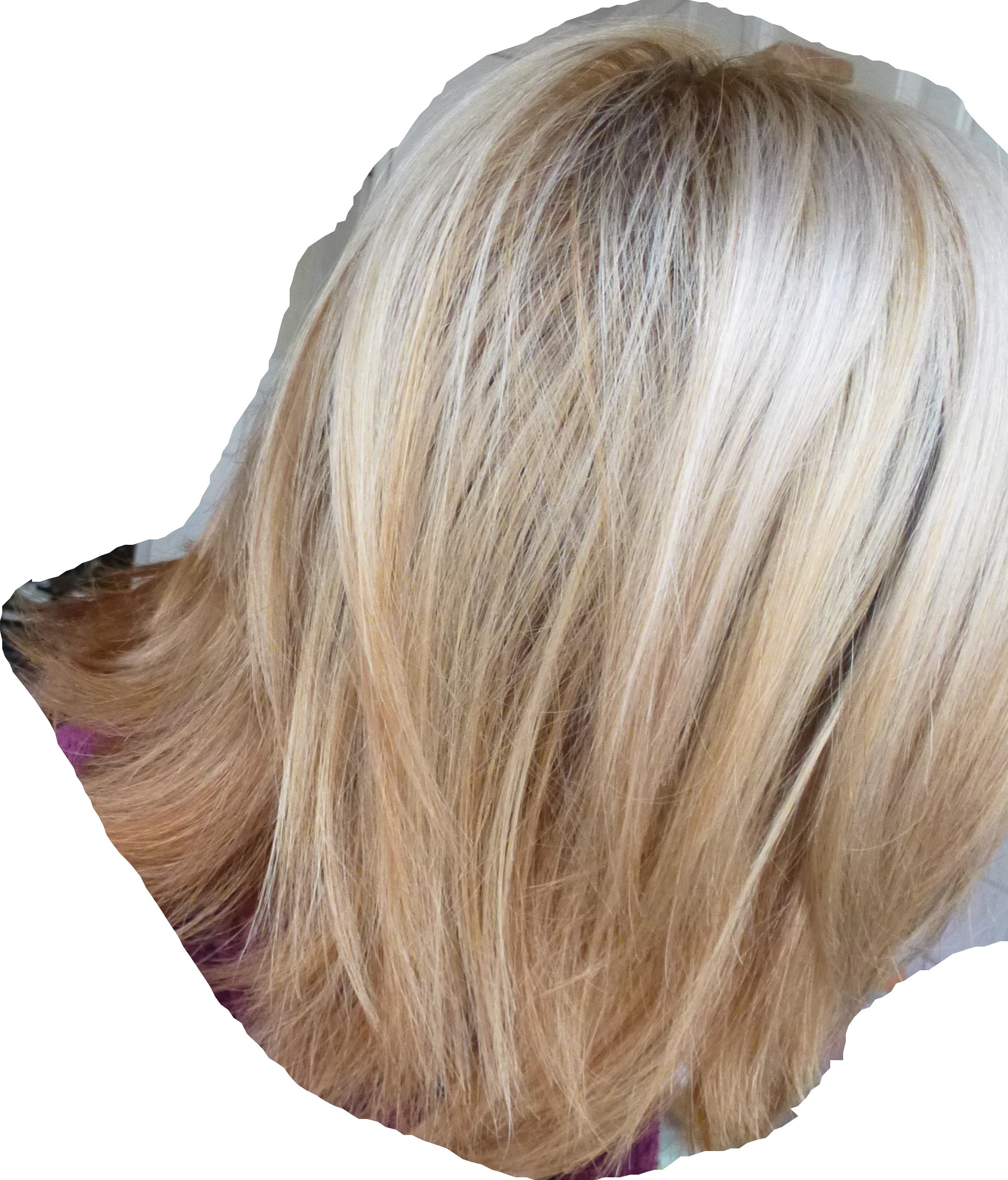 bah ca faisait une énorme démarcation doré/cendré trop laid quoi, mais la c'est top, et je re confirme que le doré pour les peaux pales c'est le top, la on avait l'impression que j'avais pas loin de 45ans avec le bout gris o_O