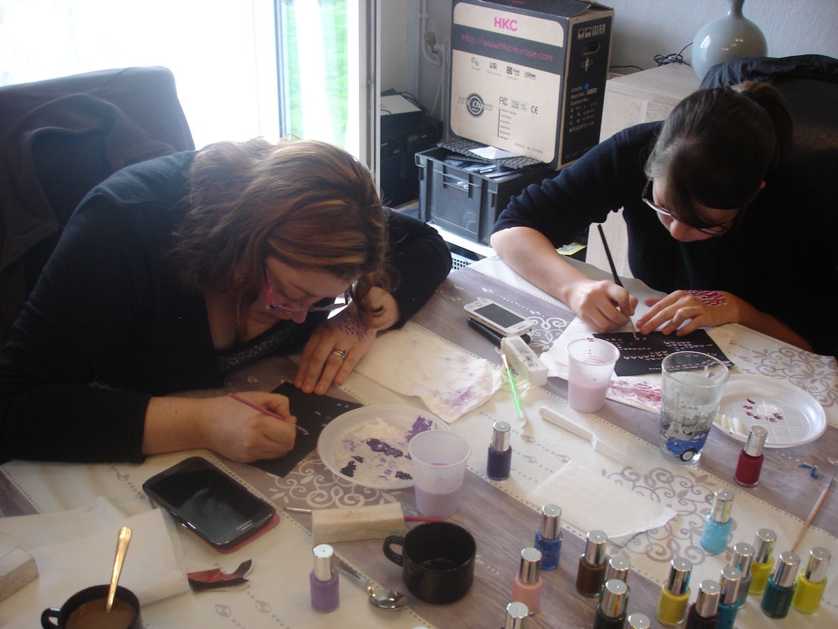 voila a eu lieu chez moi l'atelier one stroke 1 avec Origi'nail ( steph) que je connaissais deja d'un 1er atelier nail art