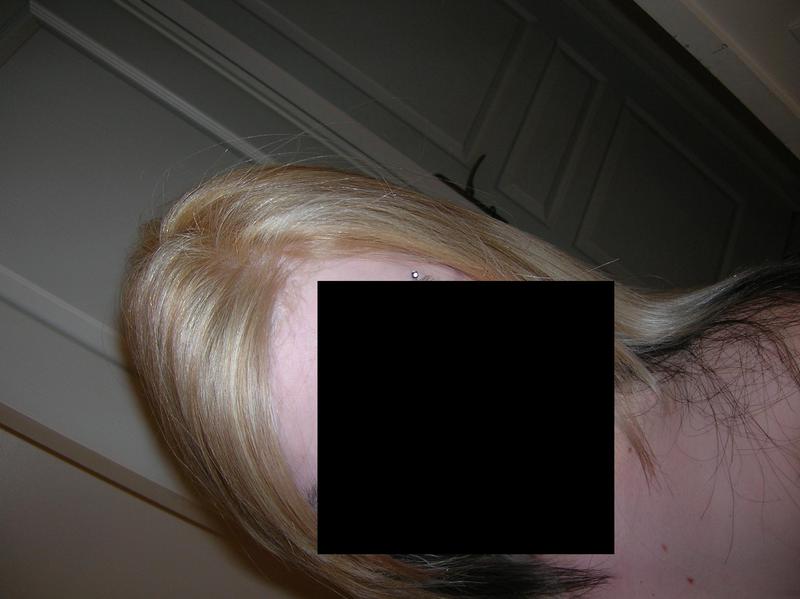 Noir en bas de nuque + une meche noir au dessu et le dessu de tete blond tres clair...