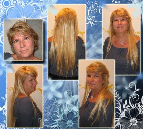 En faite elle a toujours eu les cheveux long et a fait la bétise de les couper! elle a testée les extensions à chaud mais n'est pas tombé sur quelqu'un de douée..