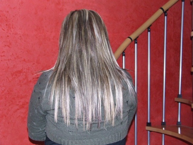 sur la dernière photo je vous ai mis un gros plande ma couleur,il y a du platine,du chocolat et du blonds un peu doré ,le kit n'as pas de platine et pourtant il va très bien avec............ voilà les filles