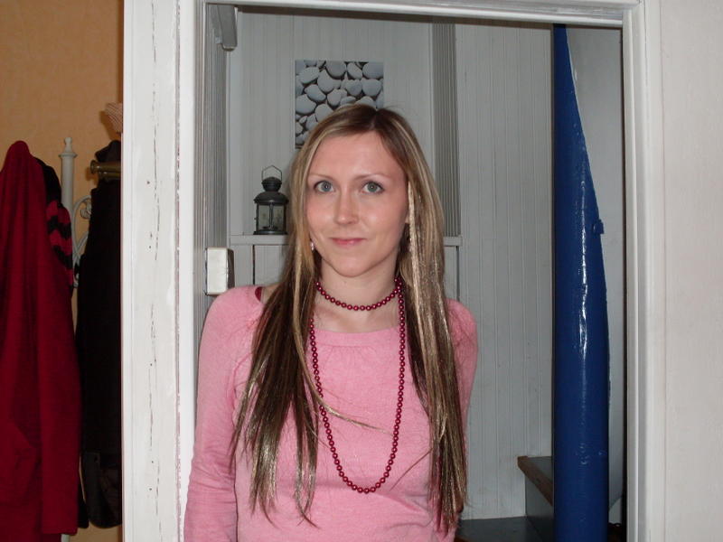 Une petite photo de dehors... j'ai du la prendre à bout de bras donc on ne voit pas la longueur mais je pense qu'on voit mieux l'aspect des extensions. Ca vous va mieux, mesdemoiselles ? ;)