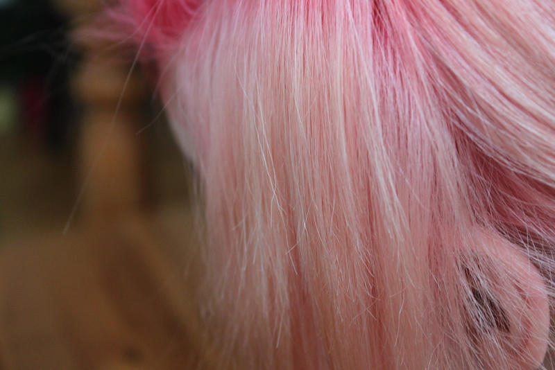 Donc racine rose et tout le reste qui se dégrade jusqu'au platine,j'pense leur faire un petit coup de silver sur les pointes pour déjaunir ça,ça sera plus joli tant qu'à faire..