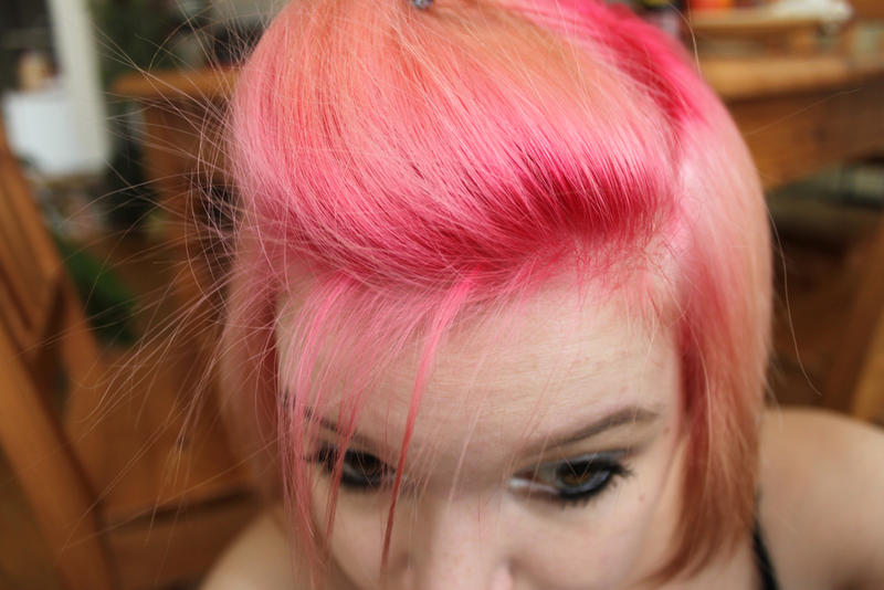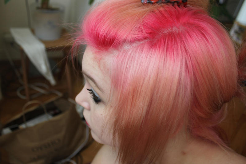 Voilà ce que ça donne,ça a même masqué les racines rose lol,perso j'adore,c'est légèrement plus vert en vrai!