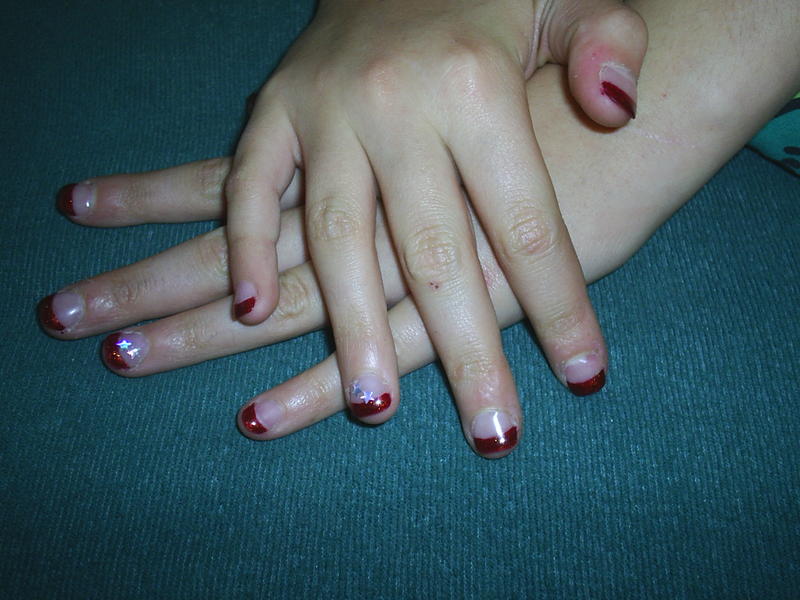 mais je trouve qu'une french foncée n'est pas le mieu pour des ongles courts ou rongés, ca les faits encore plus petits, mais ce n 'est que mon avis perso, t'as bien tafé c'est pas evident les ongles rongés